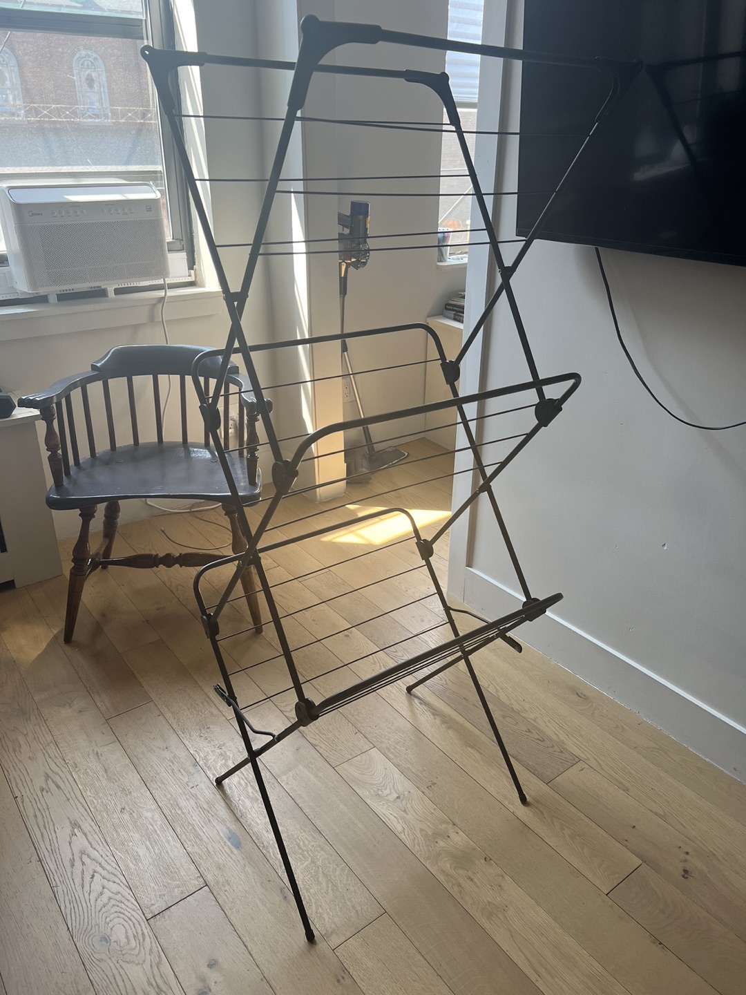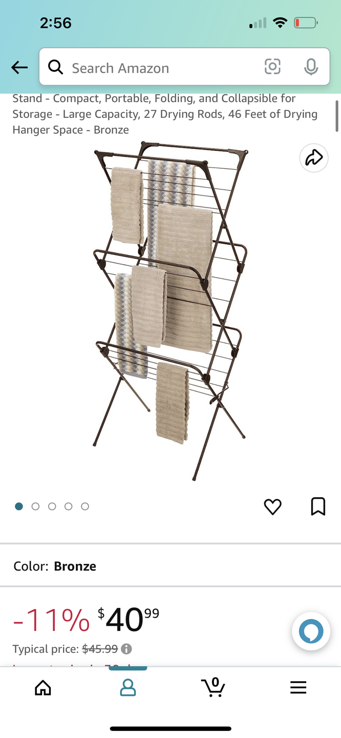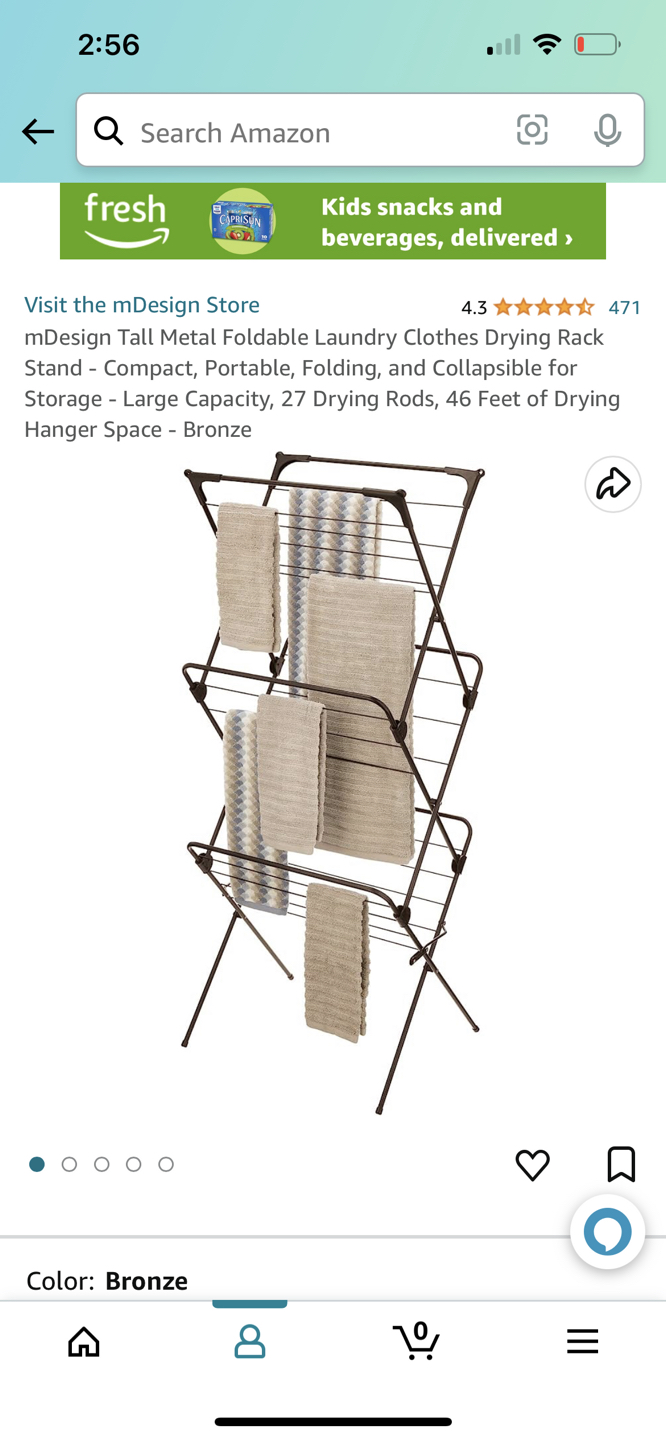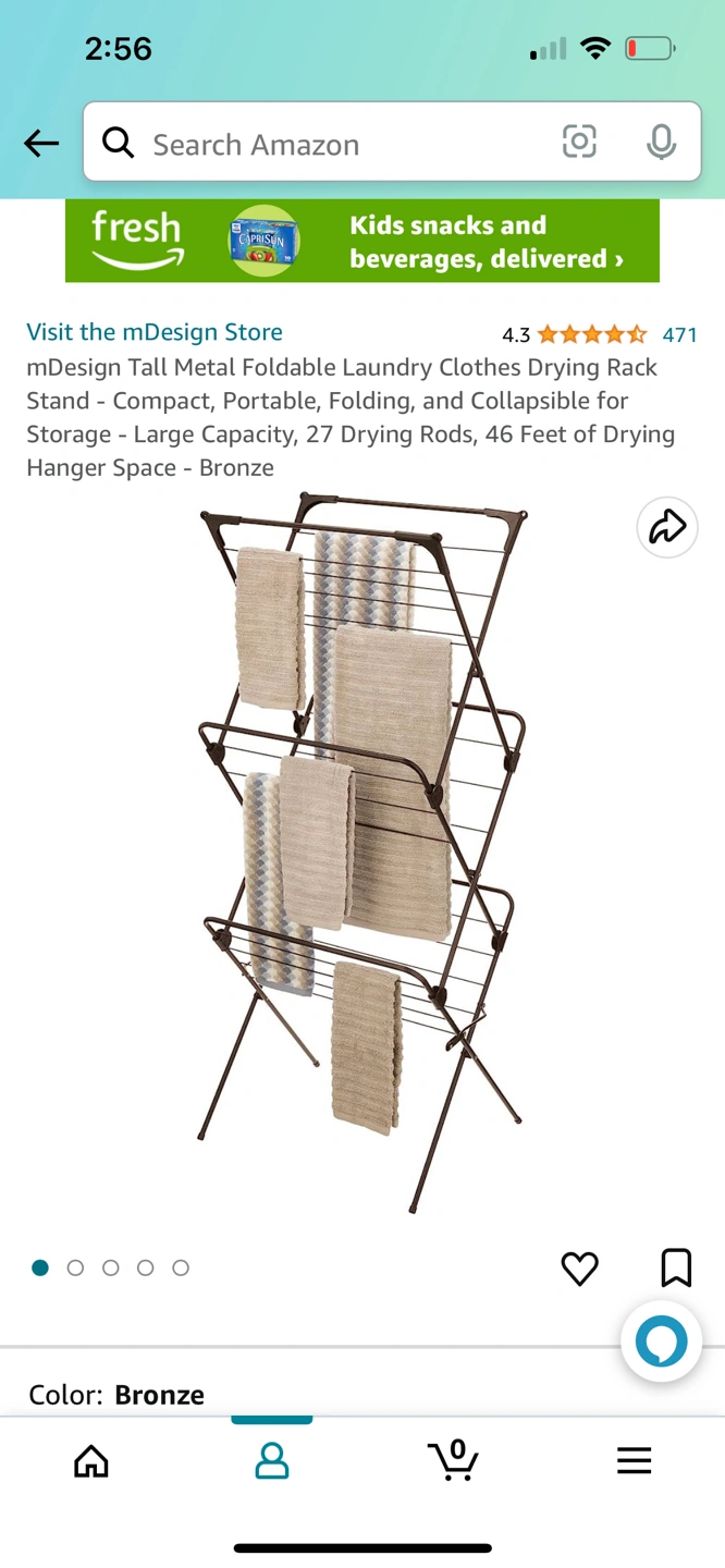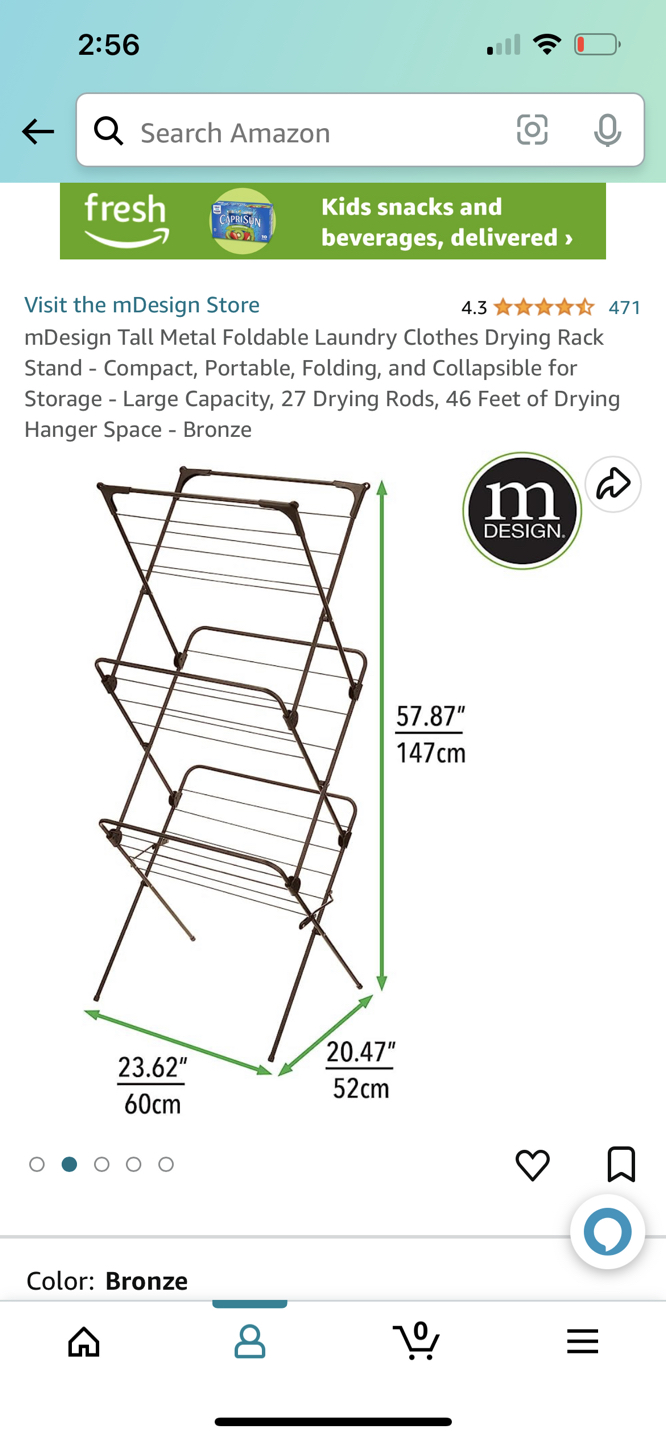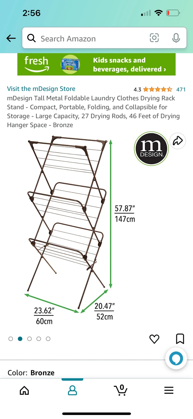 mDesign Tall Metal Foldable Laundry Clothes Drying Rack Stand - Compact, Portable, Folding, and Collapsible for Storage - Large Capacity, 27 Drying Rods, 46 Feet of Drying Hanger Space - Bronze Originally $45 on Amazon New; never used Details Material Alloy Steel Product Dimensions 20.47"D x 23.62"W x 57.87"H Brand MDesign Color Bronze Recommended Uses For Product Storage Mounting Type Pole, Foldable Freestanding Special Feature Large Capacity,Lightweight,Portable