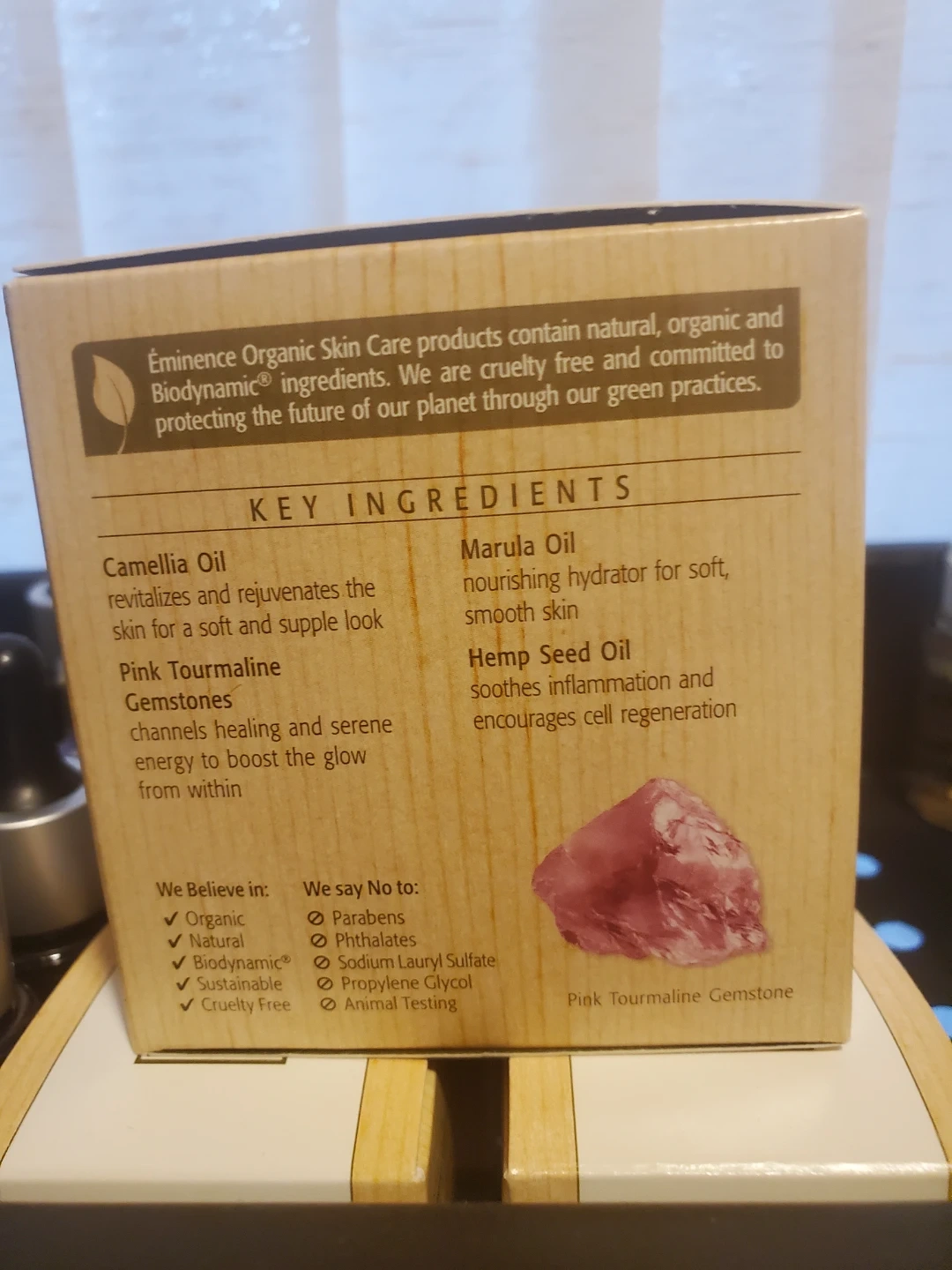 This Éminence Organic Skin Care solid face oil revitalizes and nourishes the skin. It's blended with camellia oil, pink tourmaline gemstones, and marula oil. Suitable for normal to dry skin types, this oil melts into the skin to soften and deeply nourish.