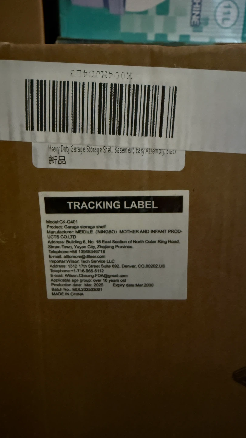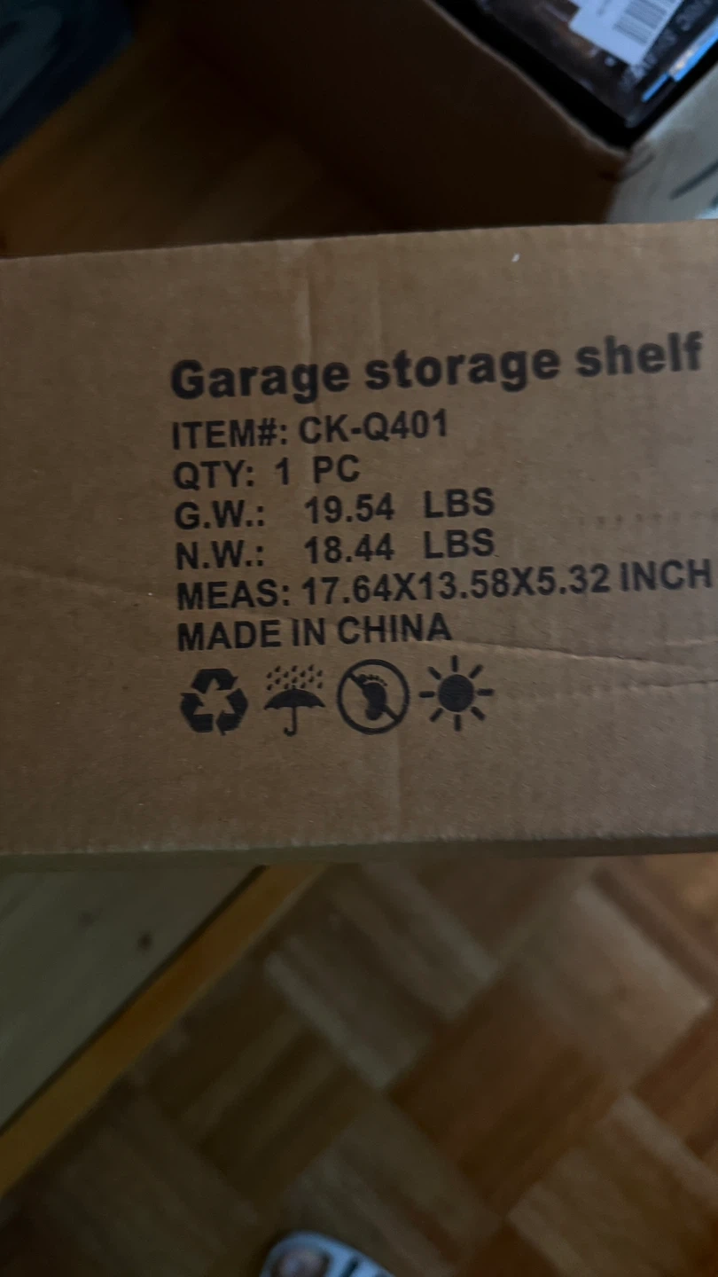 154Selling a heavy duty garage storage shelf by MEIDILE. It's easy to assemble and perfect for your basement or garage. The item number is CK-Q401. Dimensions are 17.64 x 13.58 x 5.32 inches Brand new in box