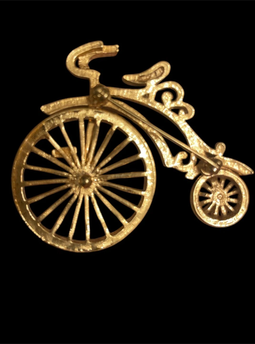 Vintage gold-tone bicycle brooch! It's a unique piece with a classic design. Perfect for adding a touch of vintage charm to any outfit. Brand new/no box. Pick up and cash only.