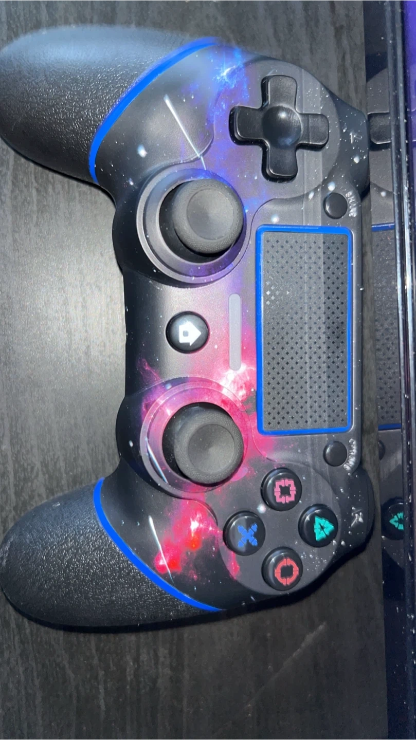 This is an AceGamer wireless controller with a cool galaxy design. It's made with a durable plastic material and has a 800mAh battery capacity. It's ready for your next gaming session!