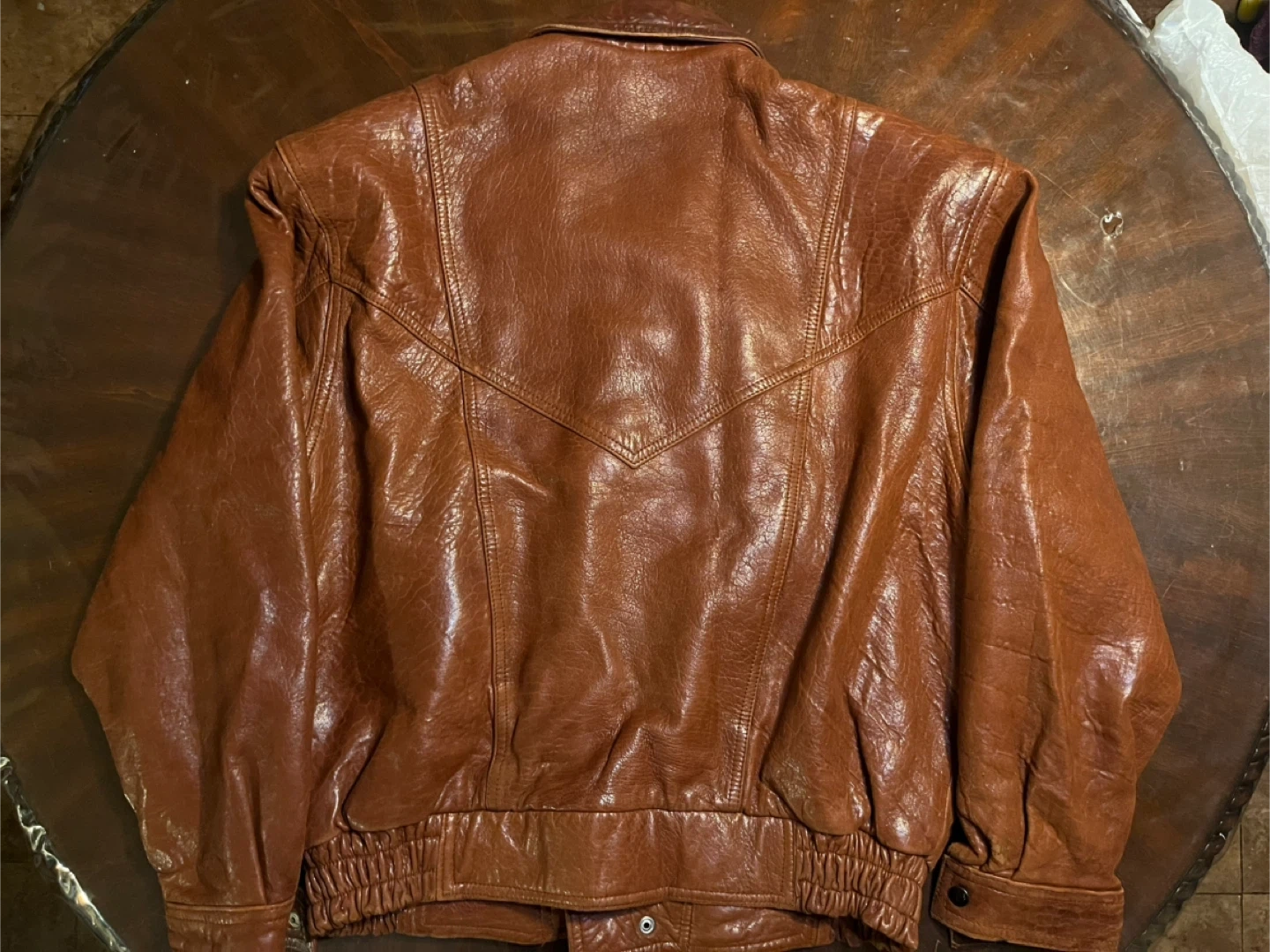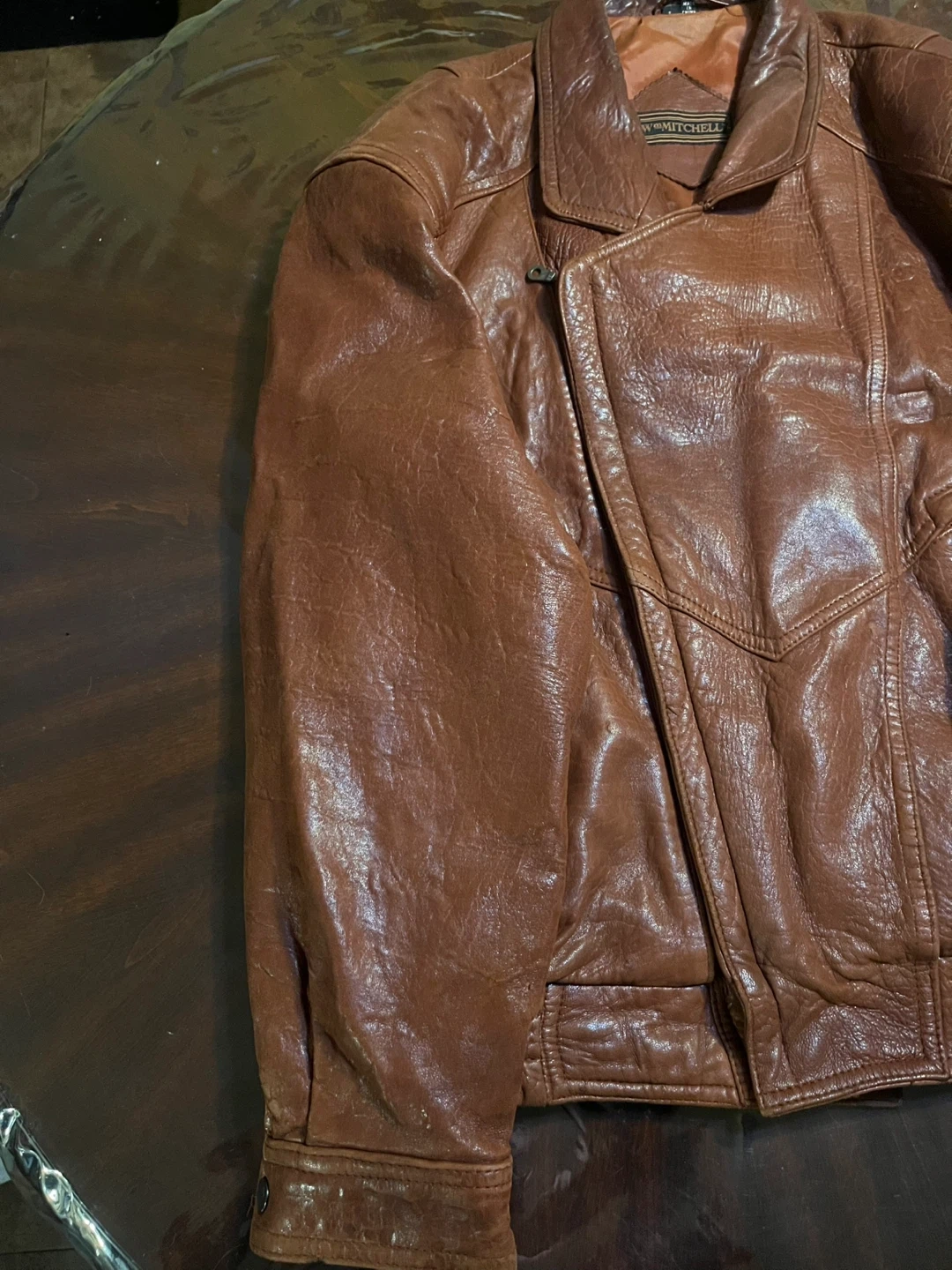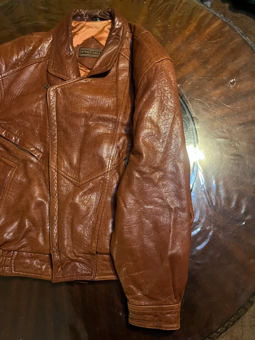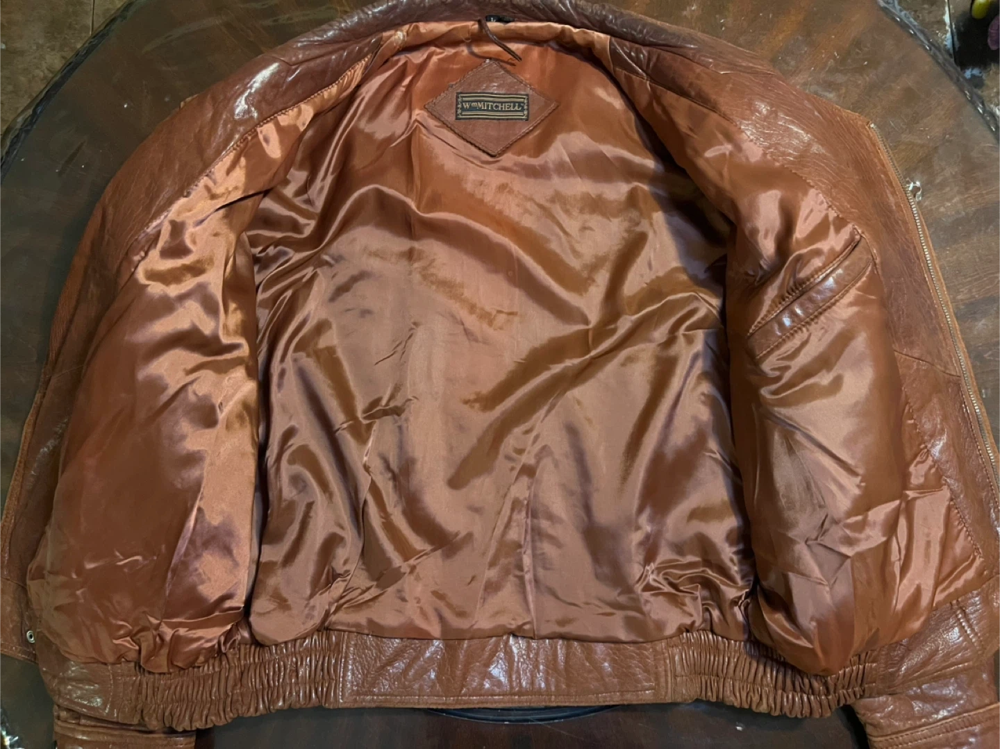 15This Men's Light Brown 90's Vintage Genuine Leather Bomber Jacket by Wm Mitchell is a stylish and classic choice for casual occasions. Made with high-quality leather and featuring a regular fit, this jacket is perfect for the winter, fall, and spring seasons. The distressed details and zip closure add a touch of retro flair, making it stand out with a vintage 90's theme. Whether you're looking to add a touch of leather to your wardrobe or simply want to add a unique piece to your collection, this bomber jacket is sure to make a statement.
