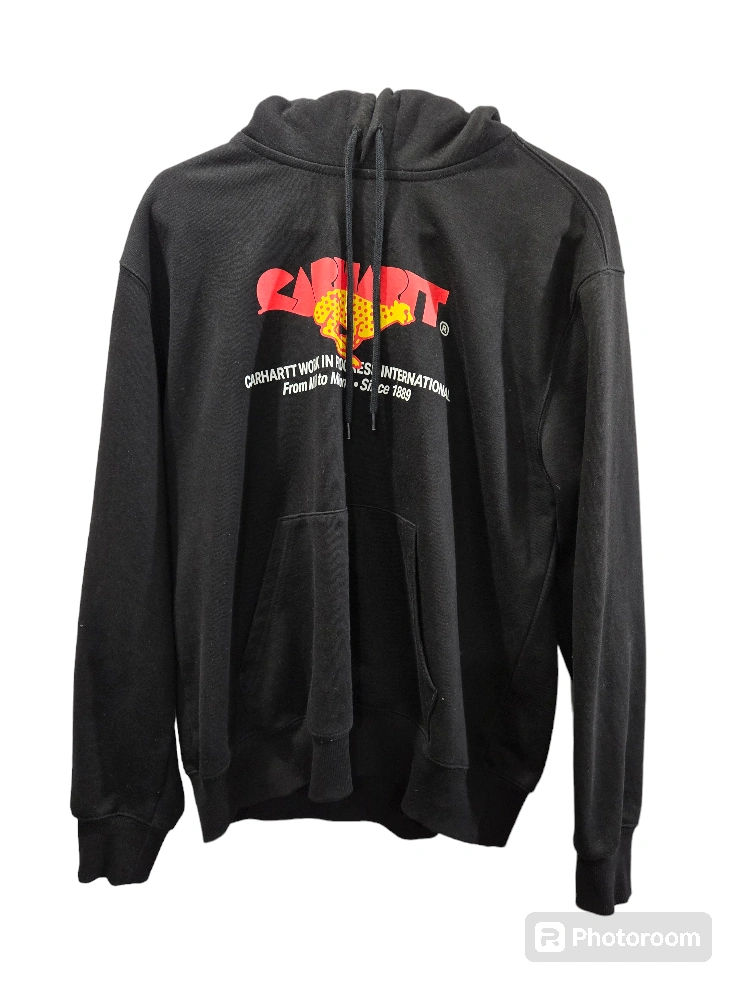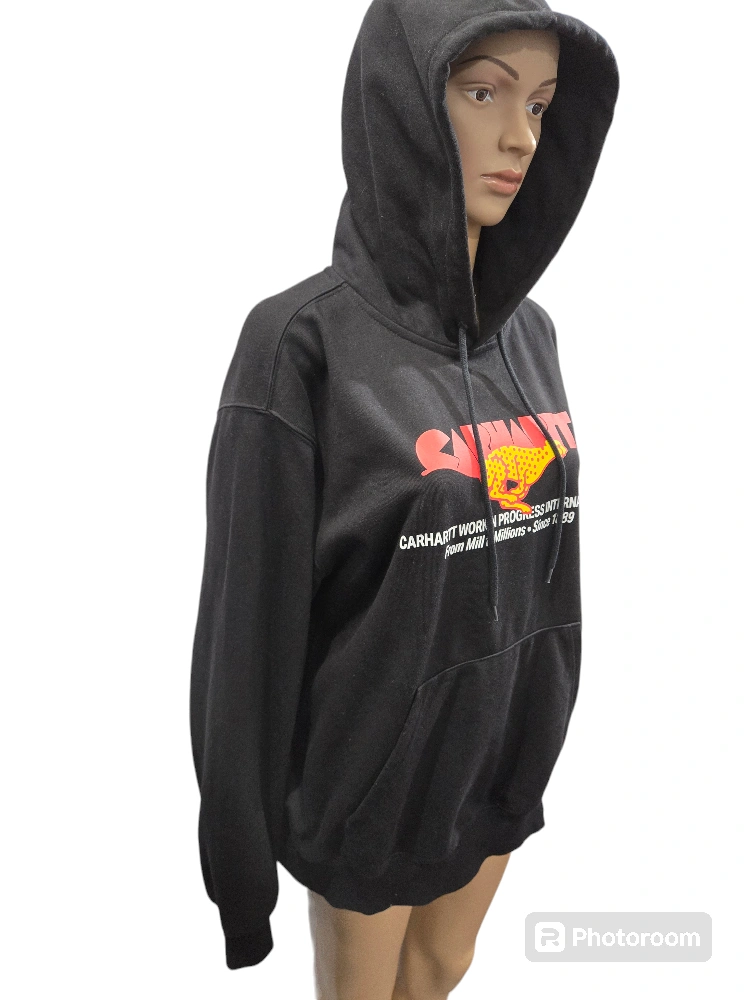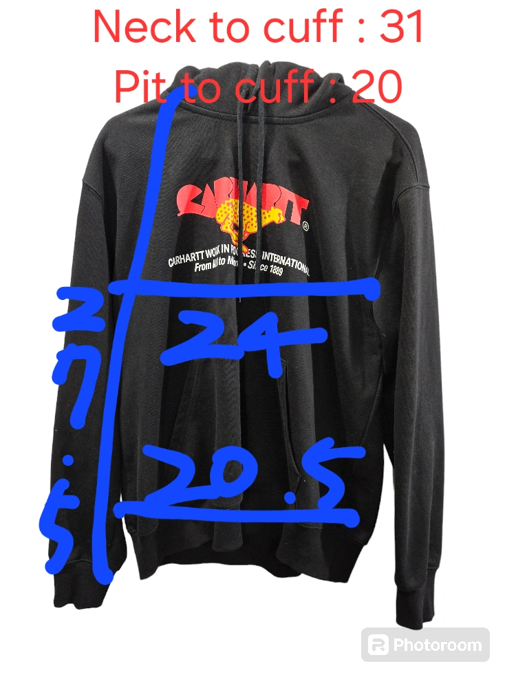 1000+**Carhartt Work In Progress Runner Hoodie** **Size:** L **Measurements:** Please refer to the image for detailed measurements. **Condition:** 8.5/10 - No visible flaws, but there are some wrinkles and minor general wear from being worn and washed. **Fabric:** 57% Cotton, 43% Polyester **Features:** - High-quality materials - Adjustable hood with drawstring - Elastic ribbed cuffs and hem - Regular fit for exceptional comfort and freedom of movement - Characteristic Carhartt branding - Loose fit - Unbrushed - Kangaroo pocket - Graphic print I am not a professional seller. I do not own a store or website. **Pick-up or Meet-up**: - Finch (Primary location for collection) - Downtown (Reserved for a designated collection day) Now Karrot lets you make a bundle. Make a bundle and I will send you an offer after the discount.