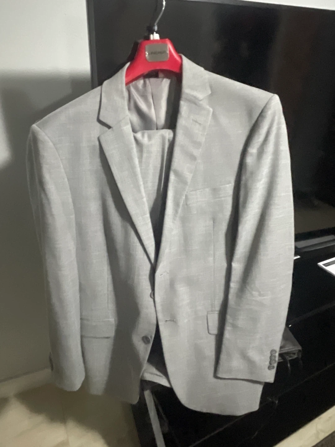 Selling a light gray men's suit. It's in great condition and ready for a new owner! Perfect for interviews, weddings, or any formal event