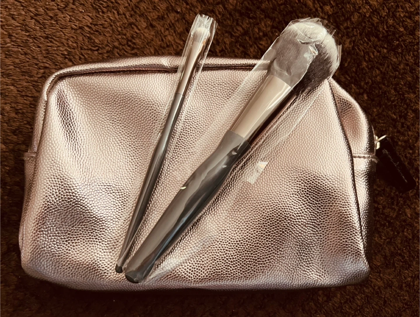 Beautiful Metallic Makeup Bag w/2 Brushes