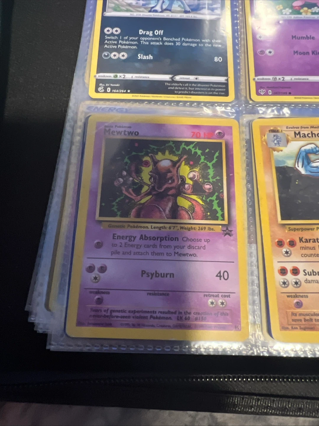 75Selling a Mewtwo Pokemon card! It has an Energy Absorption attack and a Psyburn attack. It is a genetic Pokemon with a length of 6'7" and a weight of 269 lbs