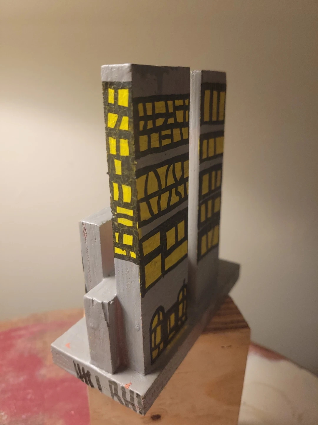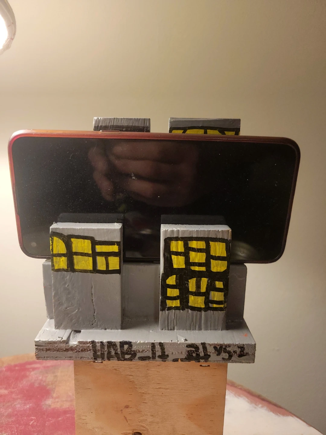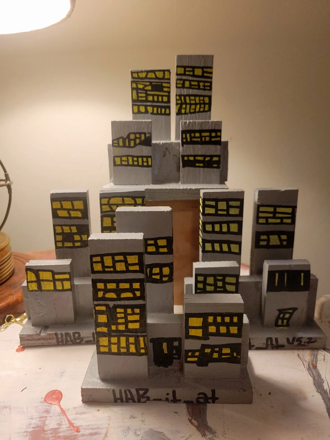 handmade upcycled wooden cityscape sculptures will add a some creative flare to your habitat. Great for display or holding your device while watching a video