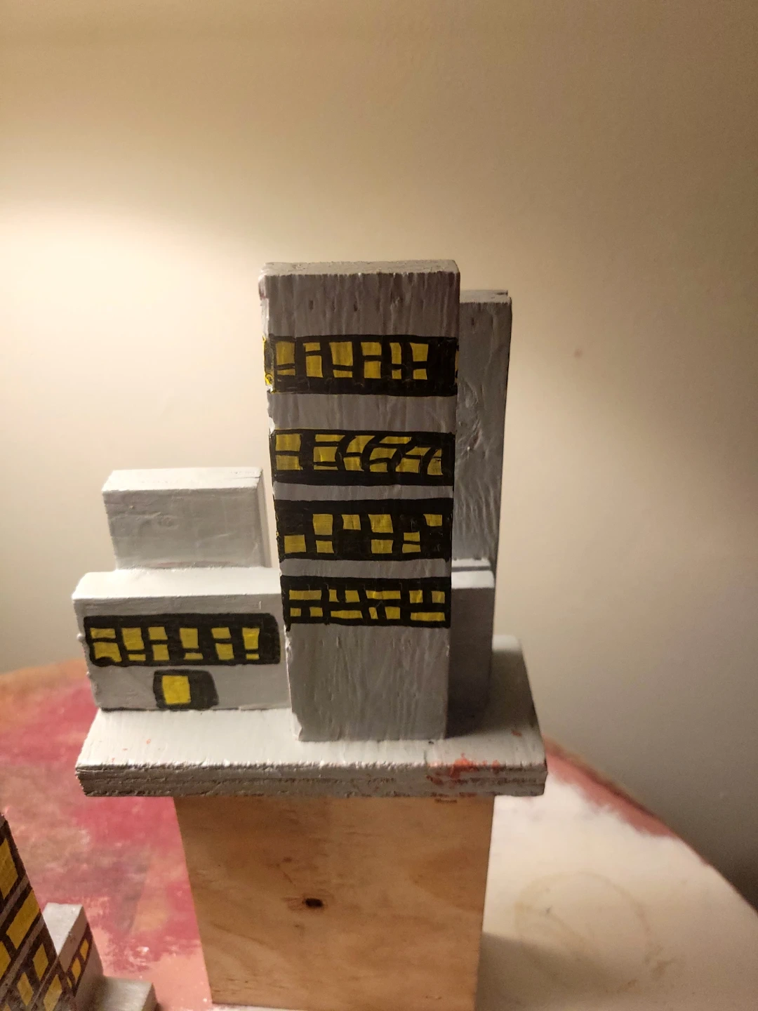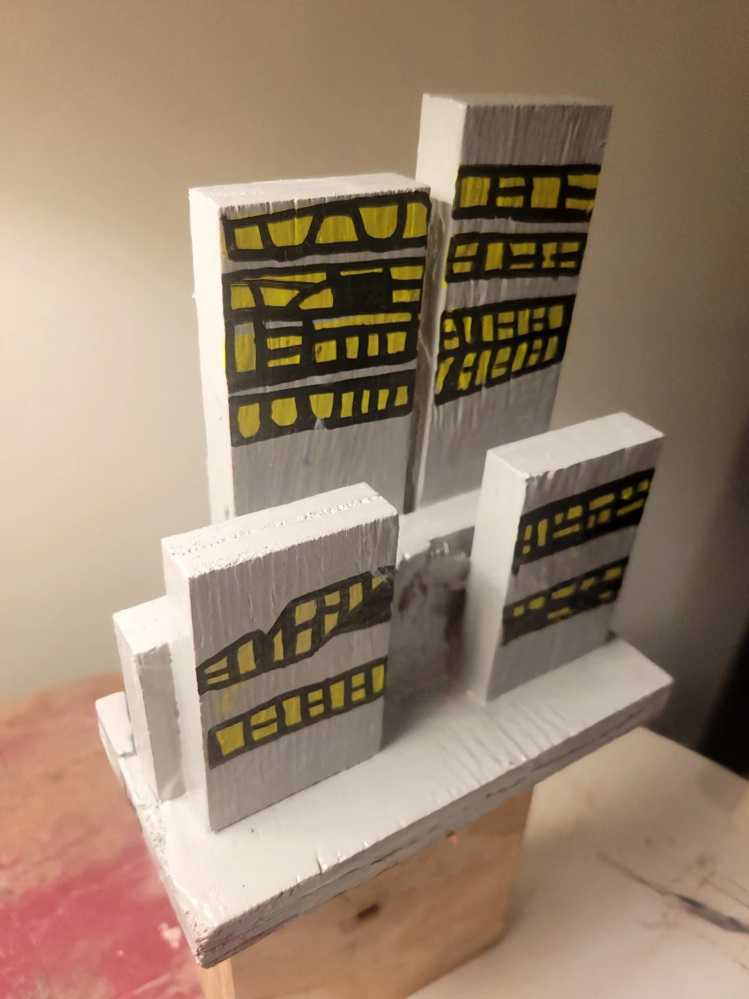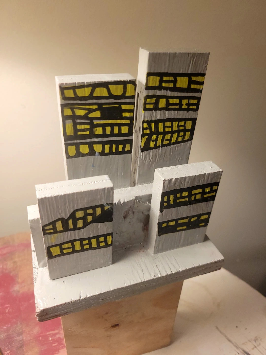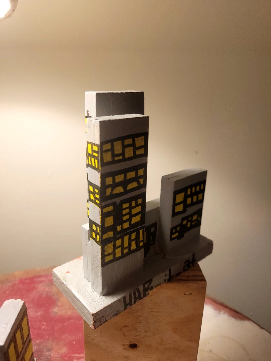 handmade upcycled wooden cityscape sculptures will add a some creative flare to your habitat. Great for display or holding your device while watching a video