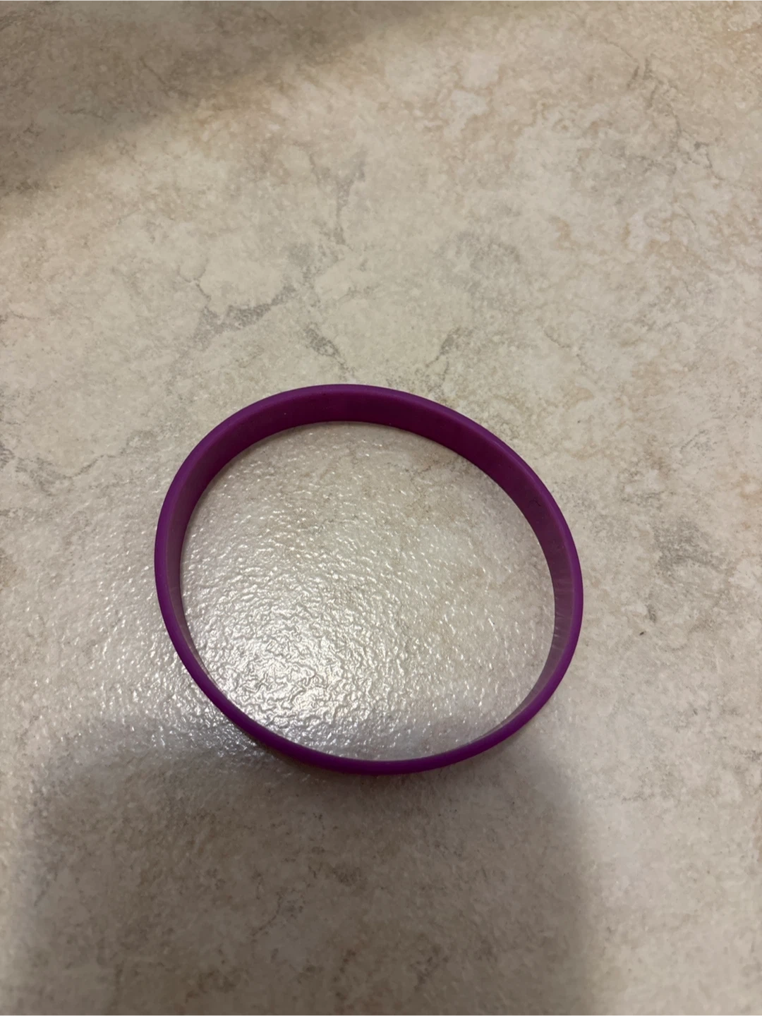 A plain purple silicone wristband. It's made of durable silicone material. This wristband is great for events or casual wear!