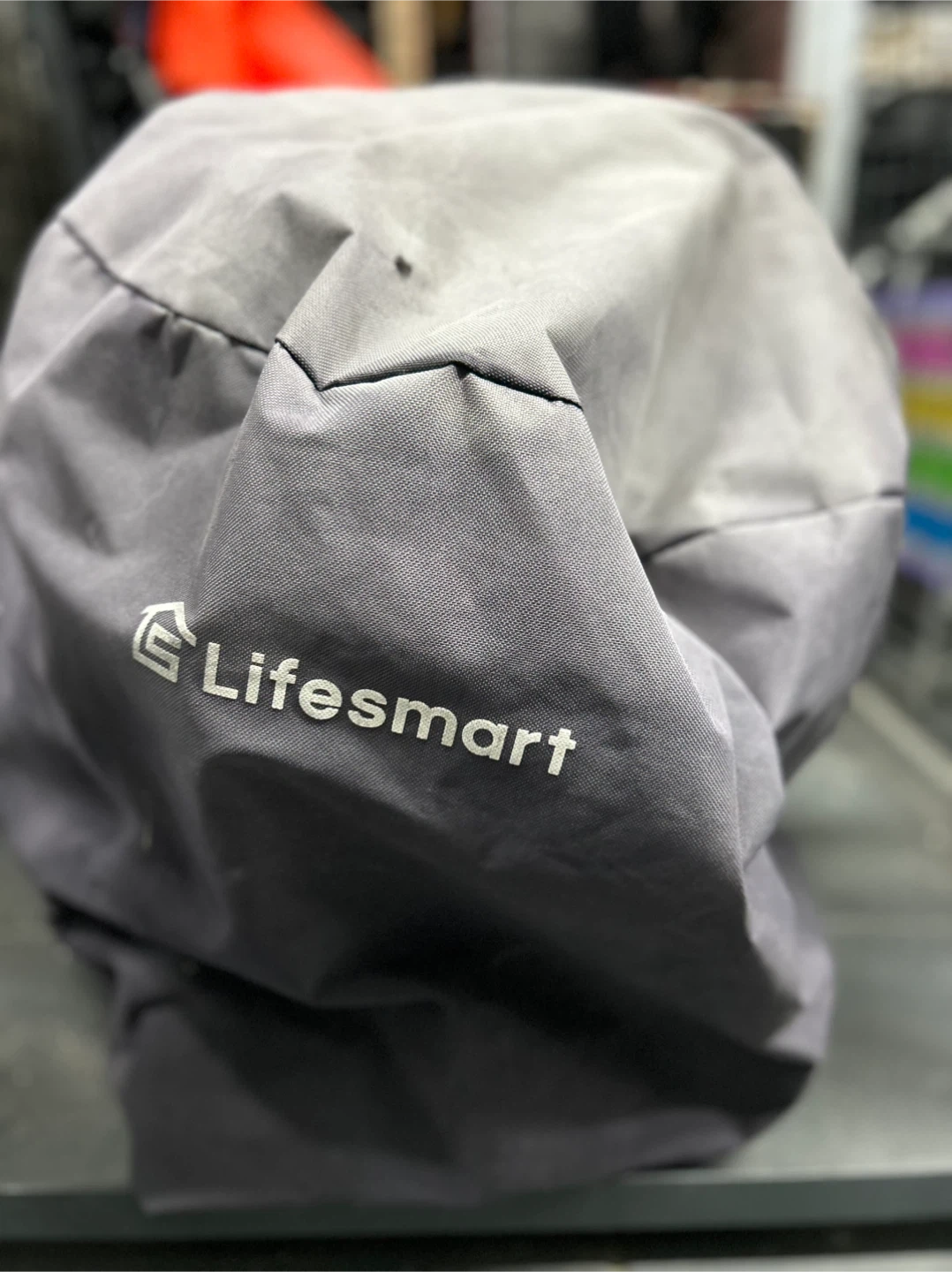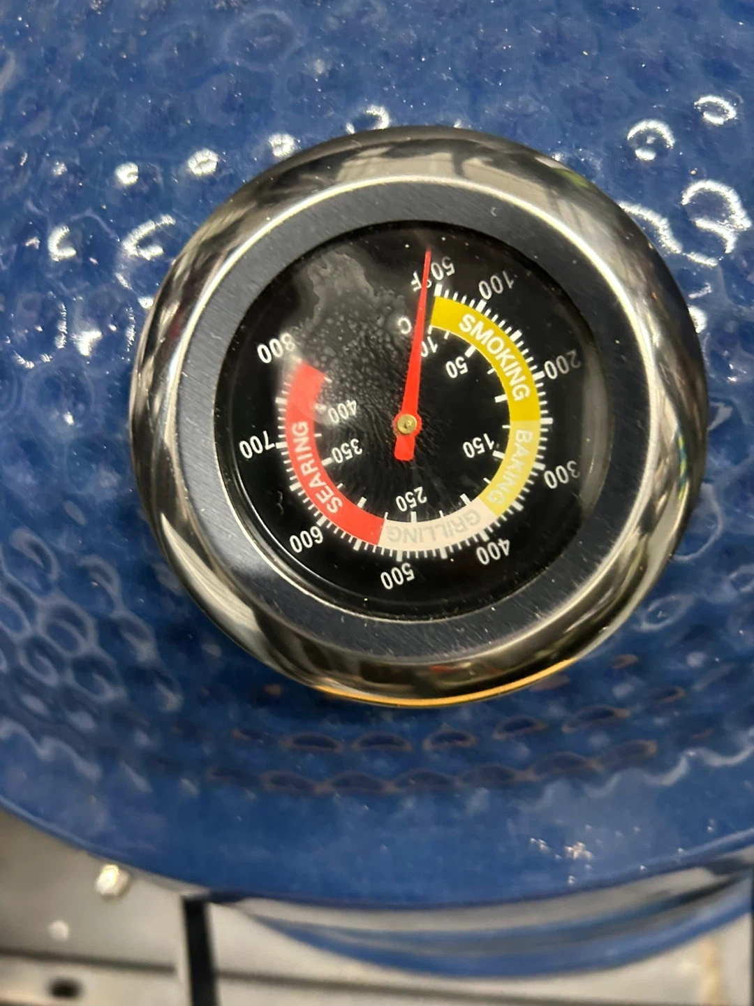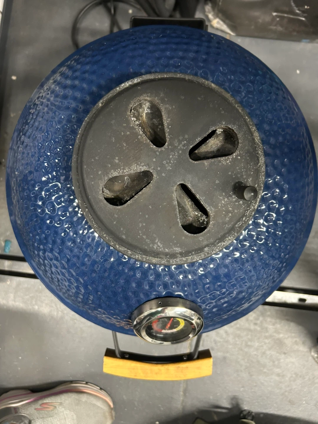 Lifesmart 10 inch Kamado Grill in blue. It's perfect for grilling, smoking, searing, and baking. Includes a 10" diam stainless steel grilling grate and a cover. Measures approximately 19.7"L x 18.9"W x 19.7"H and weighs 50 lbs. Barely used. Bought it for a summer rental a few years ago. Been sitting covered in storage ever since then. Cost 169.new.