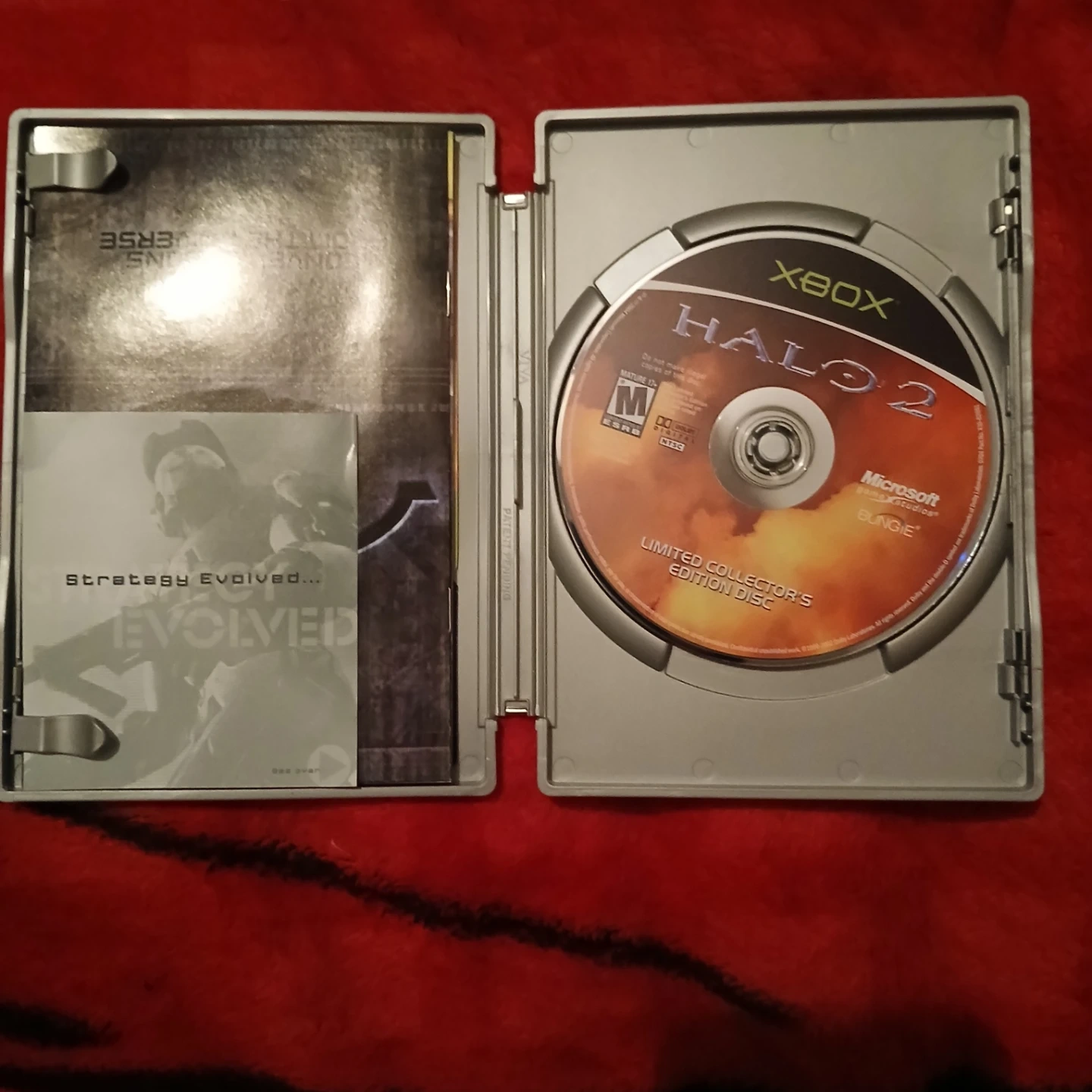 This is the Limited Collector's Edition of Halo 2 for Xbox. It includes the game disc and strategy guide. The collector's edition packaging is made of metal.