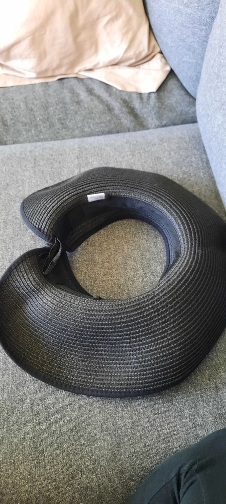 Foldable sun visor. Black straw material. Great for summer. Lightweight and packable.