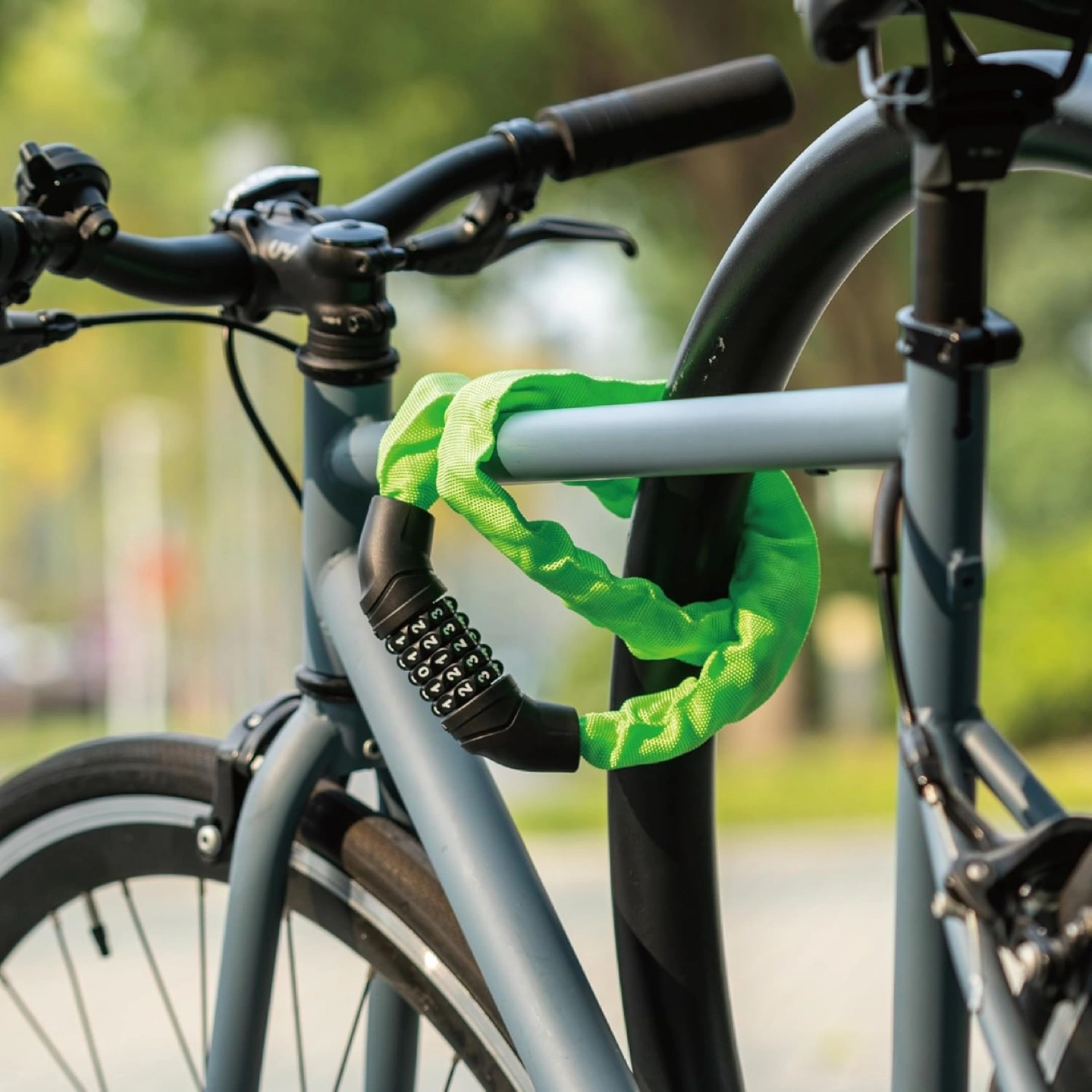 Brand new still in box bike lock. Features a combination lock. Strong anti-cut design. Lightweight and portable. Easy to use.