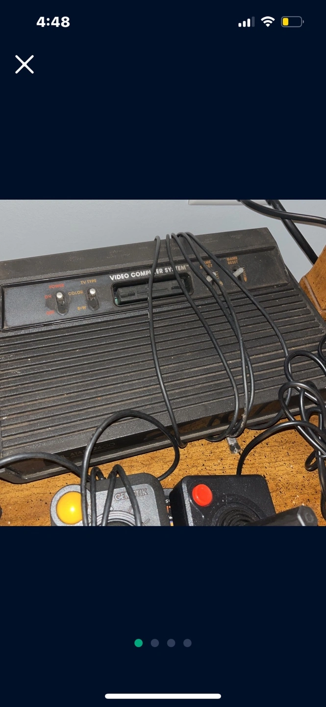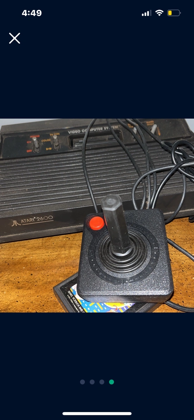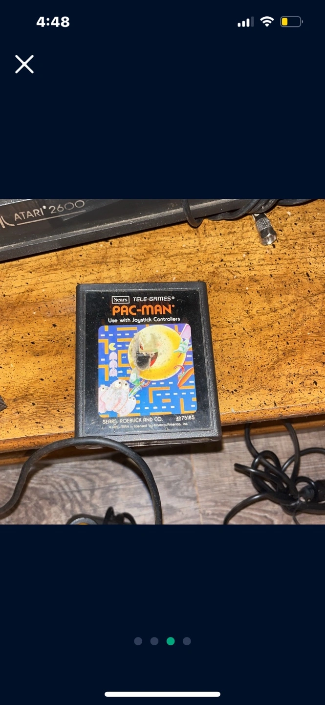 Vintage Atari 2600 console. Includes one joystick and one game cartridge. Great for collectors or retro gamers. Shows wear from age. Plus Pac-Man game