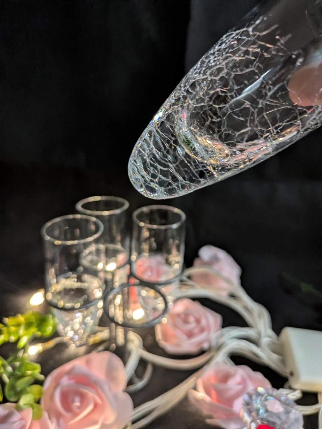 Set of 4 Crackle Glass Shot Glasses with Holder