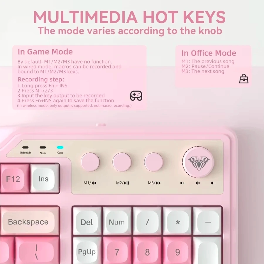 AULA F3099 Pink Mechanical Keyboard
