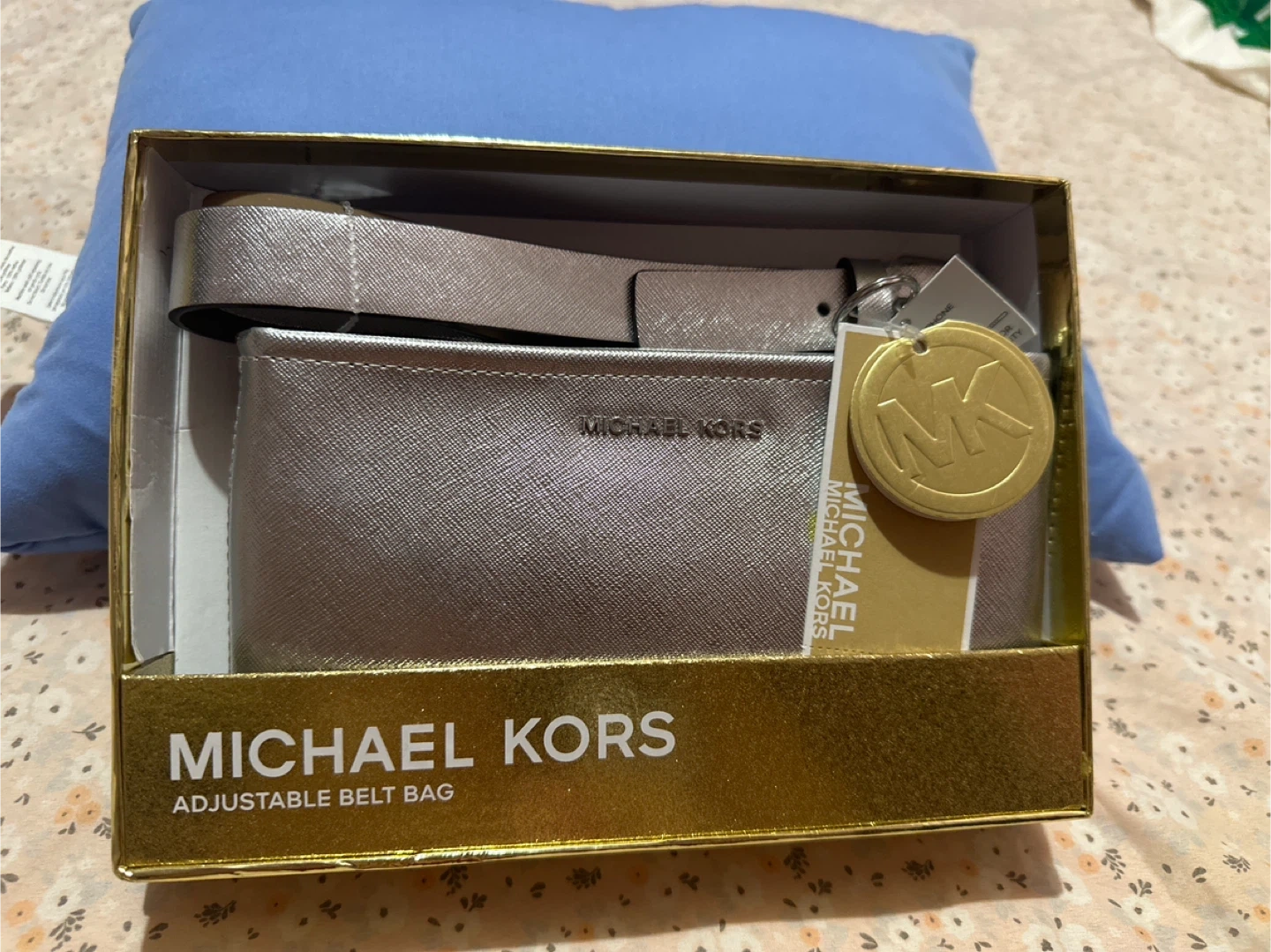 Selling a brand new Michael Kors adjustable belt bag that comes in its original box! It's a stylish and versatile accessory, perfect for keeping your essentials close and your hands free. Great for travel or everyday use!