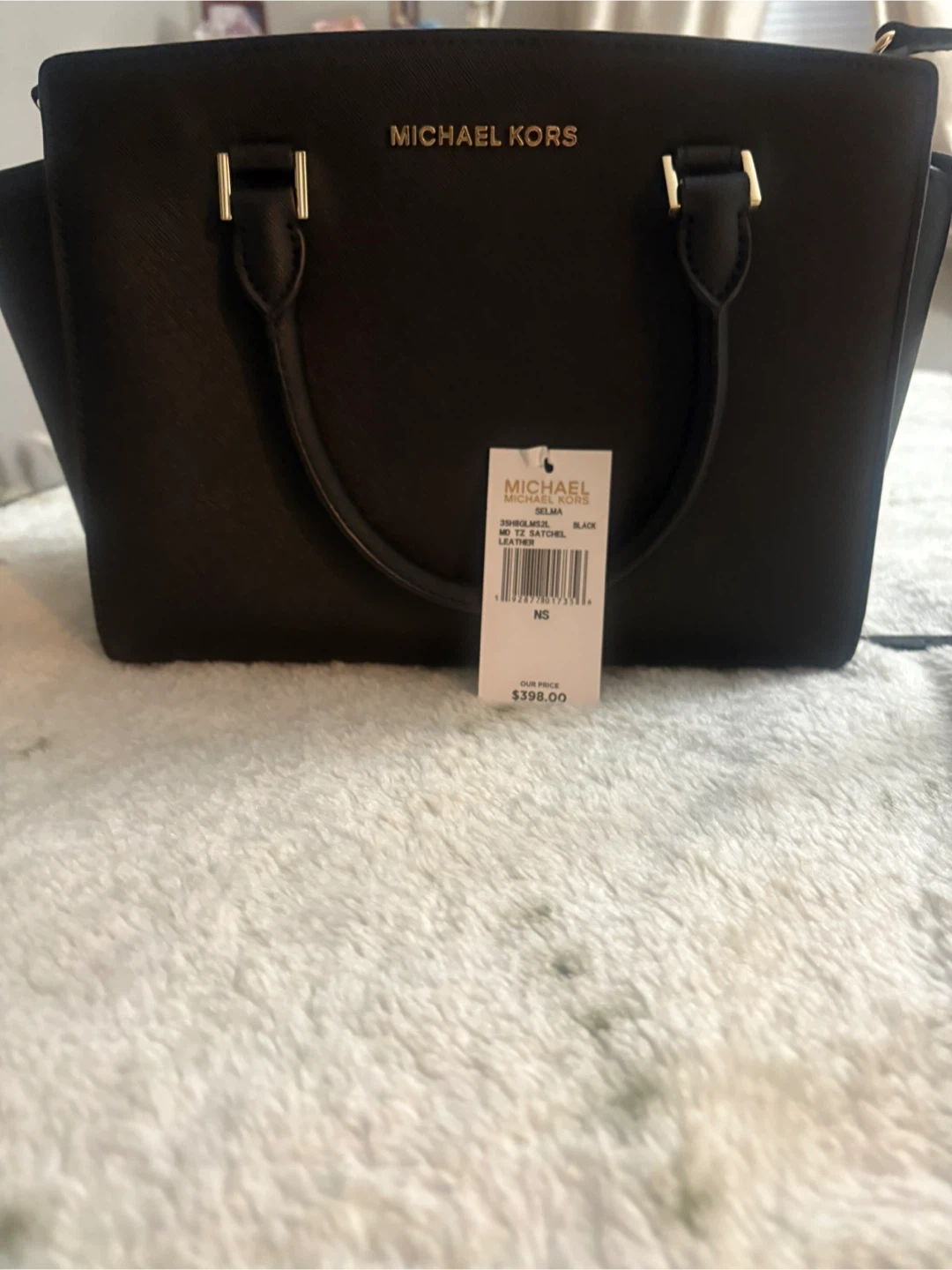 5Selling a Michael Kors Selma satchel in black! It's a stylish and versatile bag that's perfect for everyday use. The retail price was $398. It's in great condition and ready for a new home