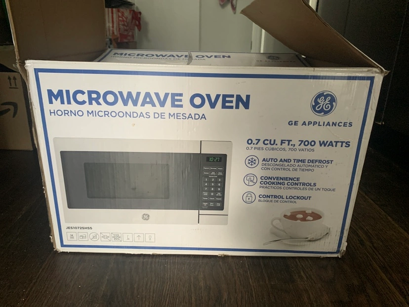 10GE microwave 0.7 cu ft, 700 watts. Glass plate needed but is in perfect condition. Market price is 110$