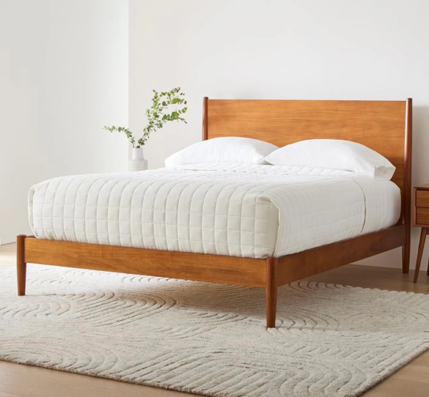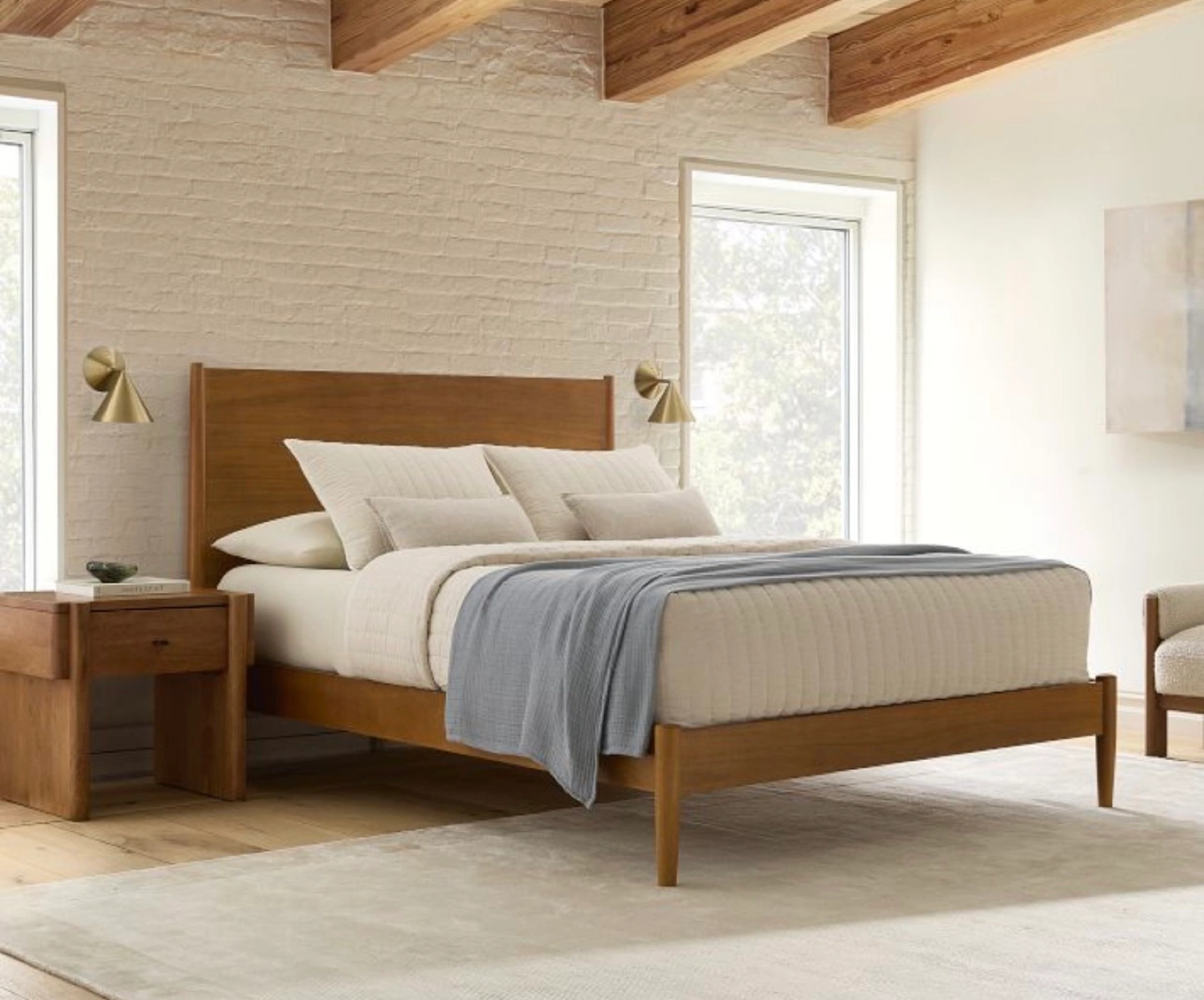 27King size bed frame, solid wood construction. Includes headboard, footboard, and slats. Leesa hybrid mattress included. Paid $1200 for bed frame & $2000 for mattress. Best offer.