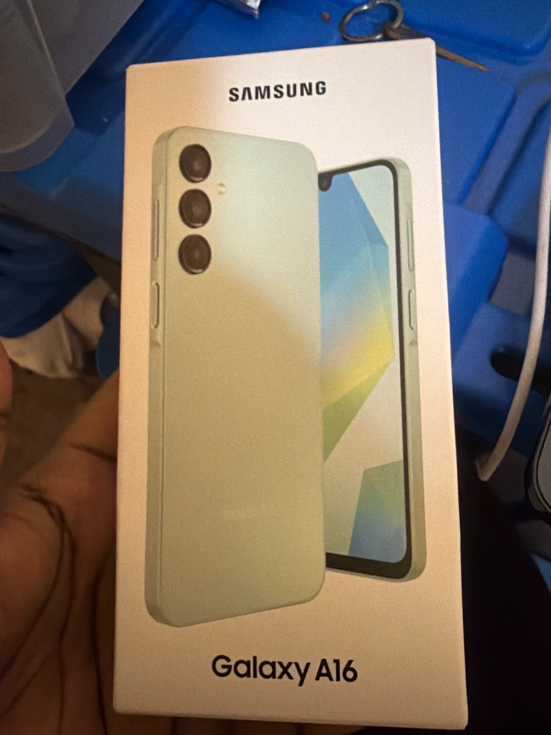 Samsung Galaxy A16, 6.7” display, 128GB of storage, 4GB of RAM. It's the light green colour. Includes original box.