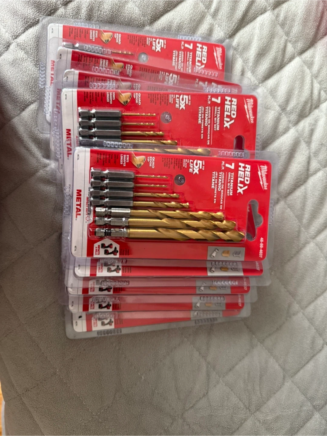 60I have a brand new Milwaukee Red Helix 7-piece titanium drill bit set for sale! These bits are designed for up to 5x longer life. Great for metal drilling!