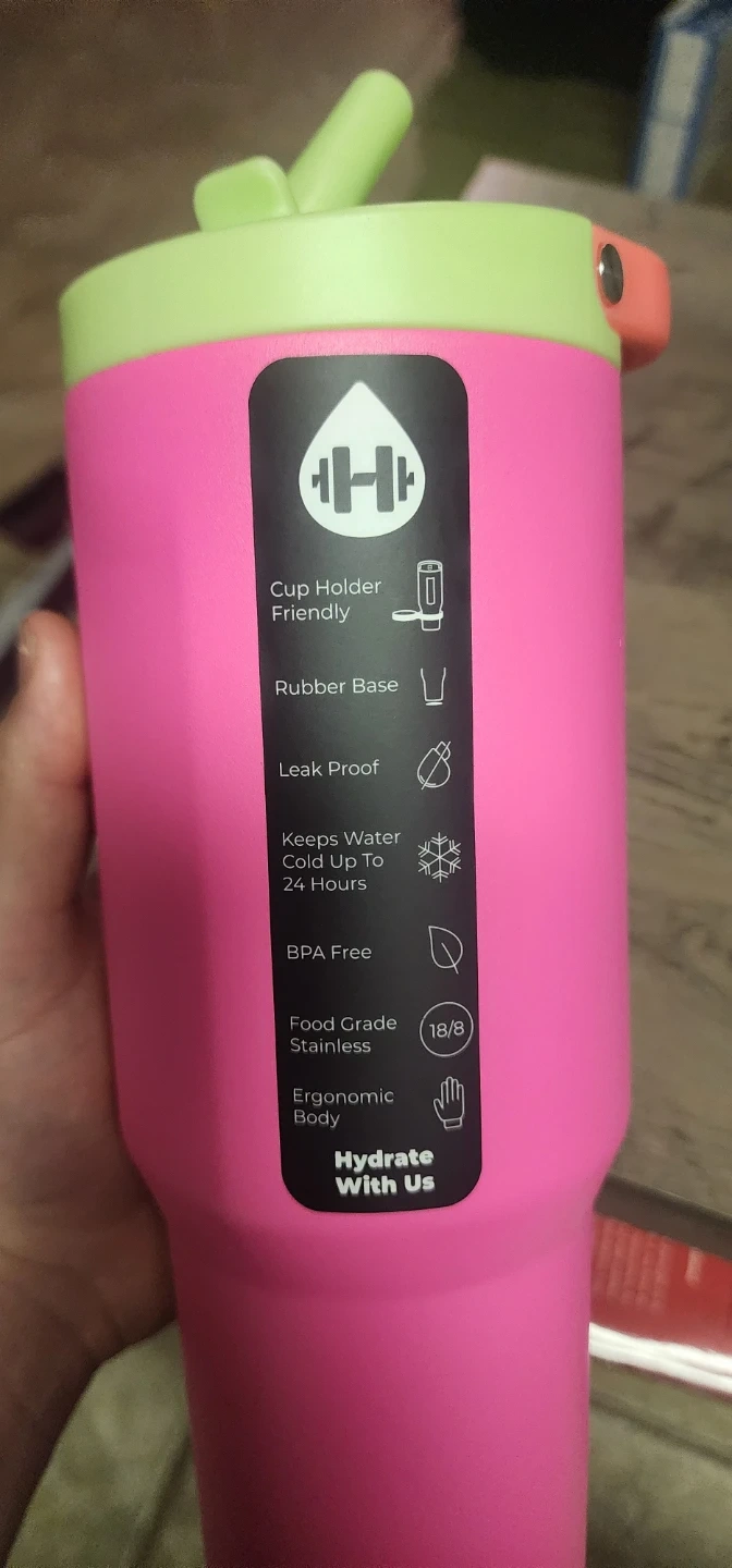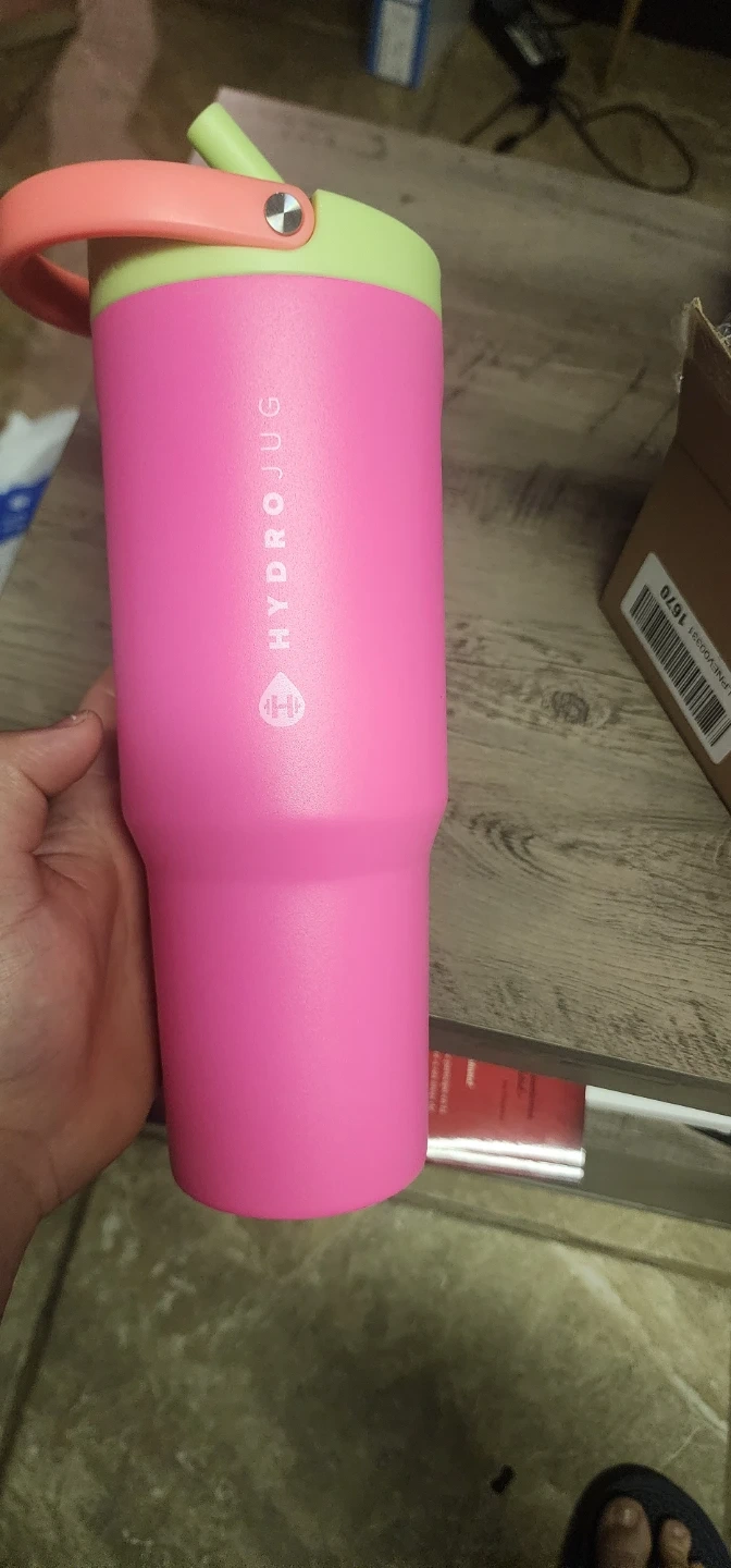 This HydroJug sport cup comes in a vibrant orchid color and holds 32oz. It's cup holder friendly with a rubber base and is leak-proof. Made from food-grade 18/8 stainless steel, it keeps water cold for up to 24 hours. Termo rosita nuevo