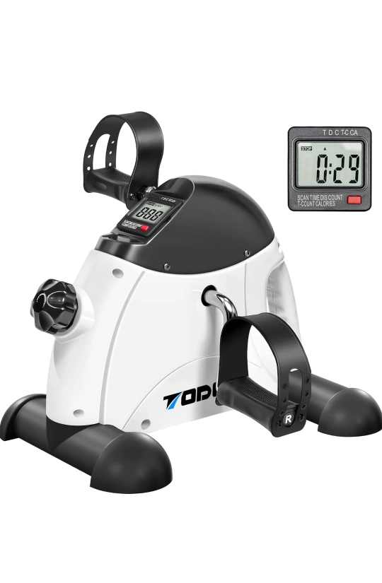 125Top Highlights Brand TODO Item weight 4.99 kg Colour White Material Plastic Product Dimensions 41D x 16W x 32H Centimetres Maximum weight recommendation 2.27 kg 【COMPACT and PORTABLE】Compact designed makes it lightweight and portable, easily to store under desk or similar space, each pedal also has a nonslip surface with molded finger grips and adjustable toe loops for added comfort and safety. Anti-scuff rubber feet will never scratch the floor, it can be used both on floor for leg exercise and on desk for arm exercise.