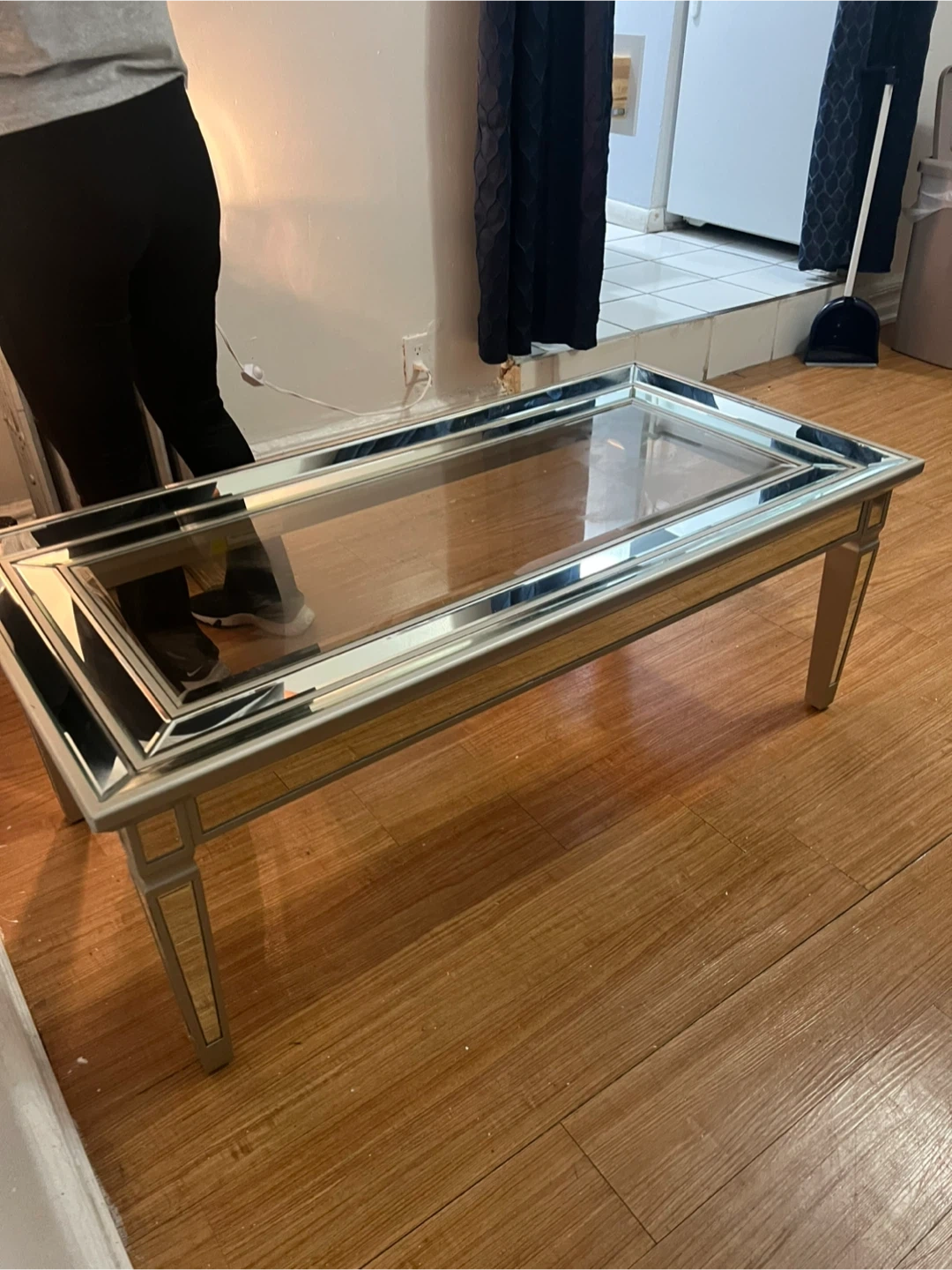 Selling a mirrored coffee table! It's in great condition and would look great in any living room. The mirrored finish adds a touch of elegance and reflects light beautifully, making the space feel brighter and more open