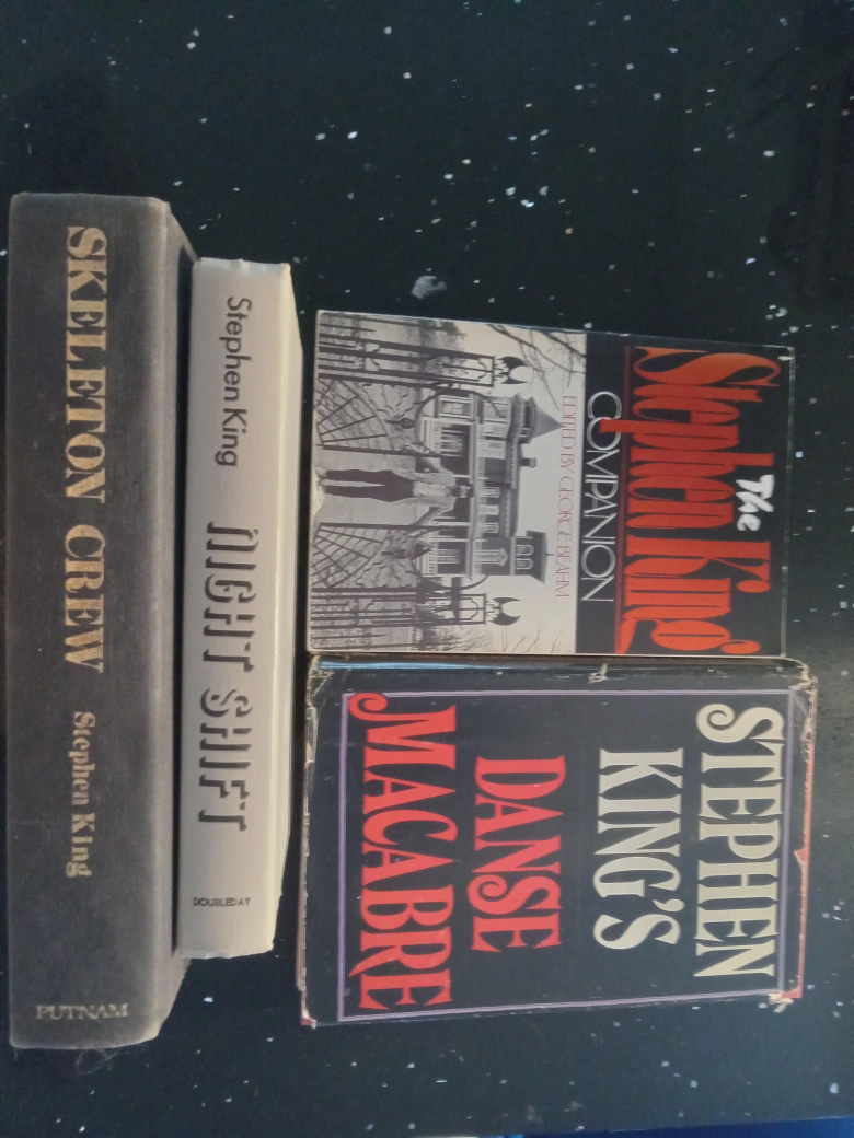 Selling a mixed lot of books. Titles include: - Skeleton Crew by Stephen King - Night Shift by Stephen King - The Stephen King Companion edited by George Beahm - Danse Macabre by Stephen King - Mary Shelley's Frankenstein - Bram Stoker's Dracula: The Film and the Legend - Dispatches from the Tenth Circle by The Onion - Operation Iraqi Freedom - The Hero with a Thousand Faces by Joseph Campbell - Astoria by Peter Stark - Invisible Monsters by Chuck Palahniuk - Cosmic Codes by Chuck Missler - Spiritual Alchemy by Jenny Tyson - Daft Wee Stories by Limmy - The Last Campaign by Thurston Clarke - Yakuza by David E. Kaplan and Alec Dubro - Moon Shot by Alan Shepard and Deke Slayton - The Nonborn King & the Adversary by Julian May - The Pope Encyclopedia by Matthew Bunson - My Story by Marilyn Monroe