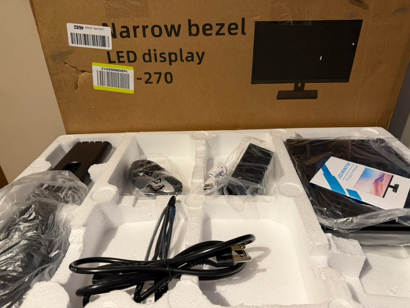 This narrow bezel LED display monitor comes with all its original accessories. It features a sleek design and is ready for use. Perfect for upgrading your workspace or entertainment setup!