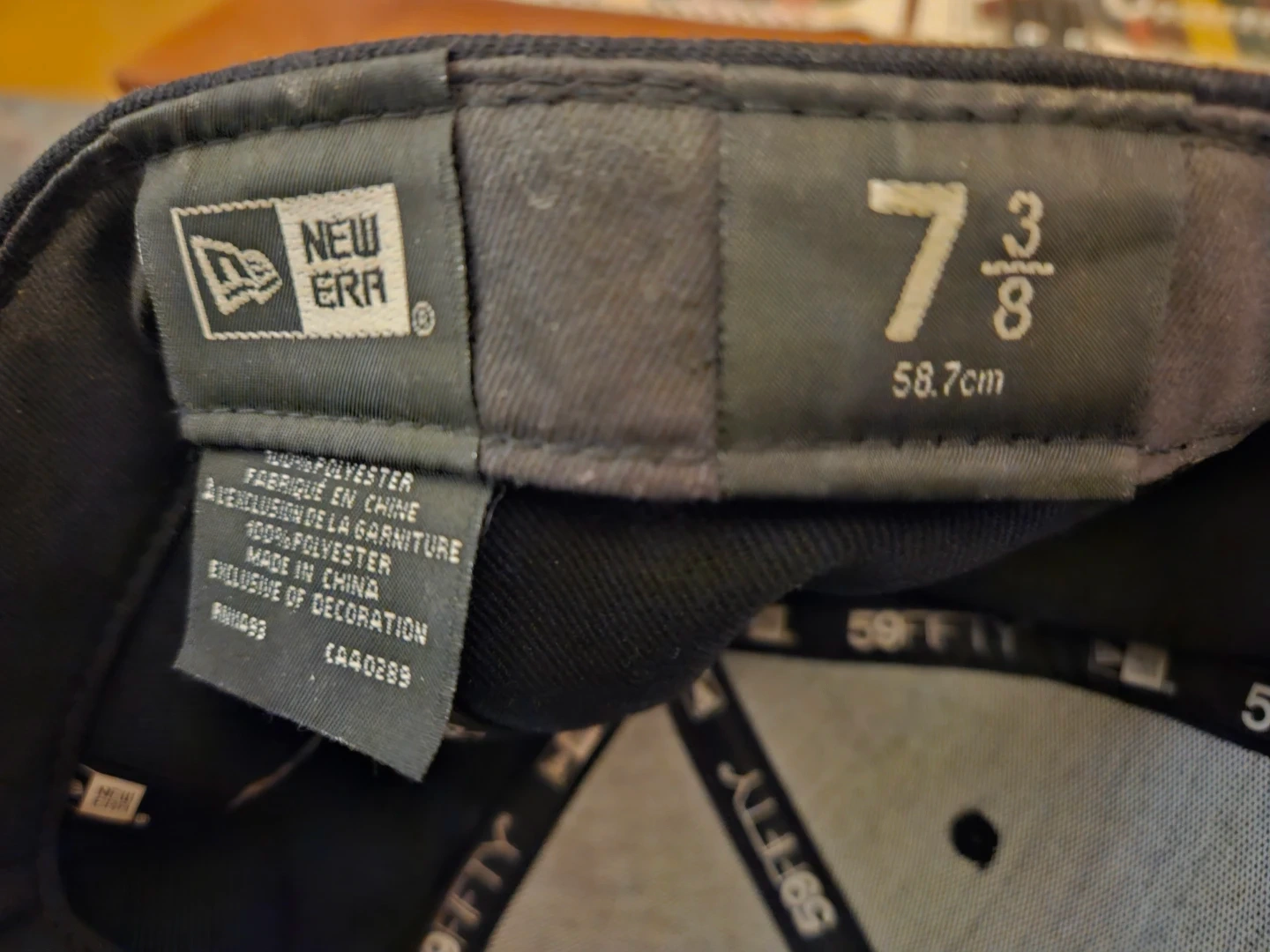 This is a New Era 59FIFTY fitted baseball cap. It's made of 100% polyester. Size is 7 3/8 (58.7cm).