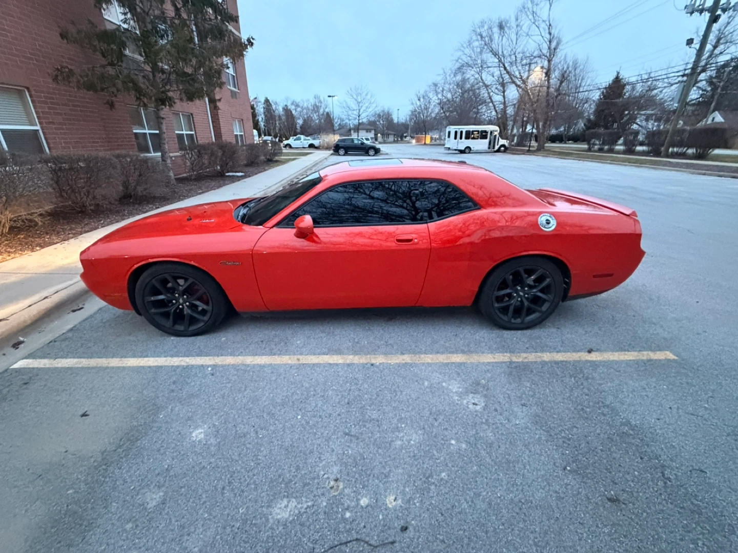 2010This is a red Dodge Challenger. It's a coupe with black rims. Tinted windows and a sunroof are visible.V8 engine.5.7 L.In great condition need gone asap.Need tow.Engine needs repair.I have no room for it m.Clean title.