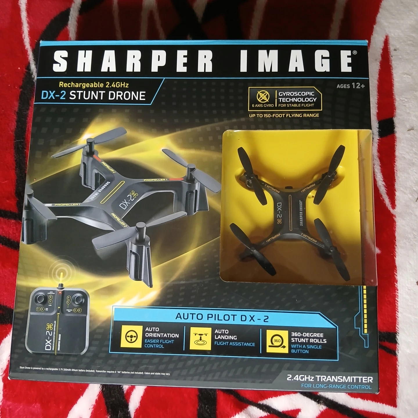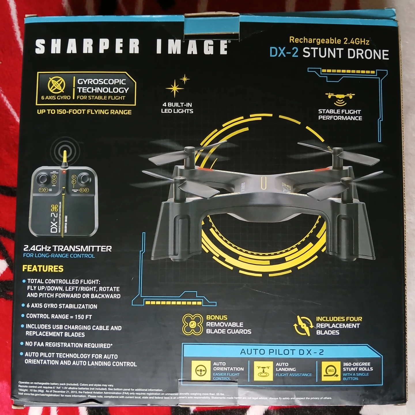 Rechargeable 2.4GHz stunt drone with 6-axis gyro for stable flight. Offers auto orientation, auto landing, and 360-degree stunt rolls. Includes USB charging cable and replacement blades.