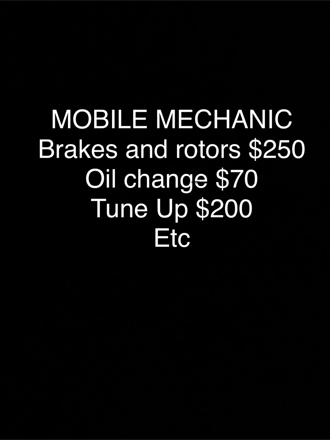 MOBILE MECHANIC Brakes and rotors $250 Oil change $70 Tune Up $200