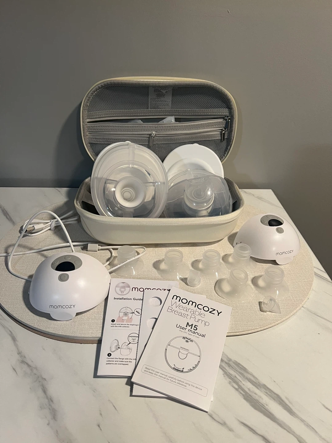 Selling a Momcozy M5 Wearable Breast Pump! It comes with all the components and accessories, including the user manual and installation guide. The pump is in excellent condition and ready for use. It's designed for convenience and portability, making pumping on the go a breeze.