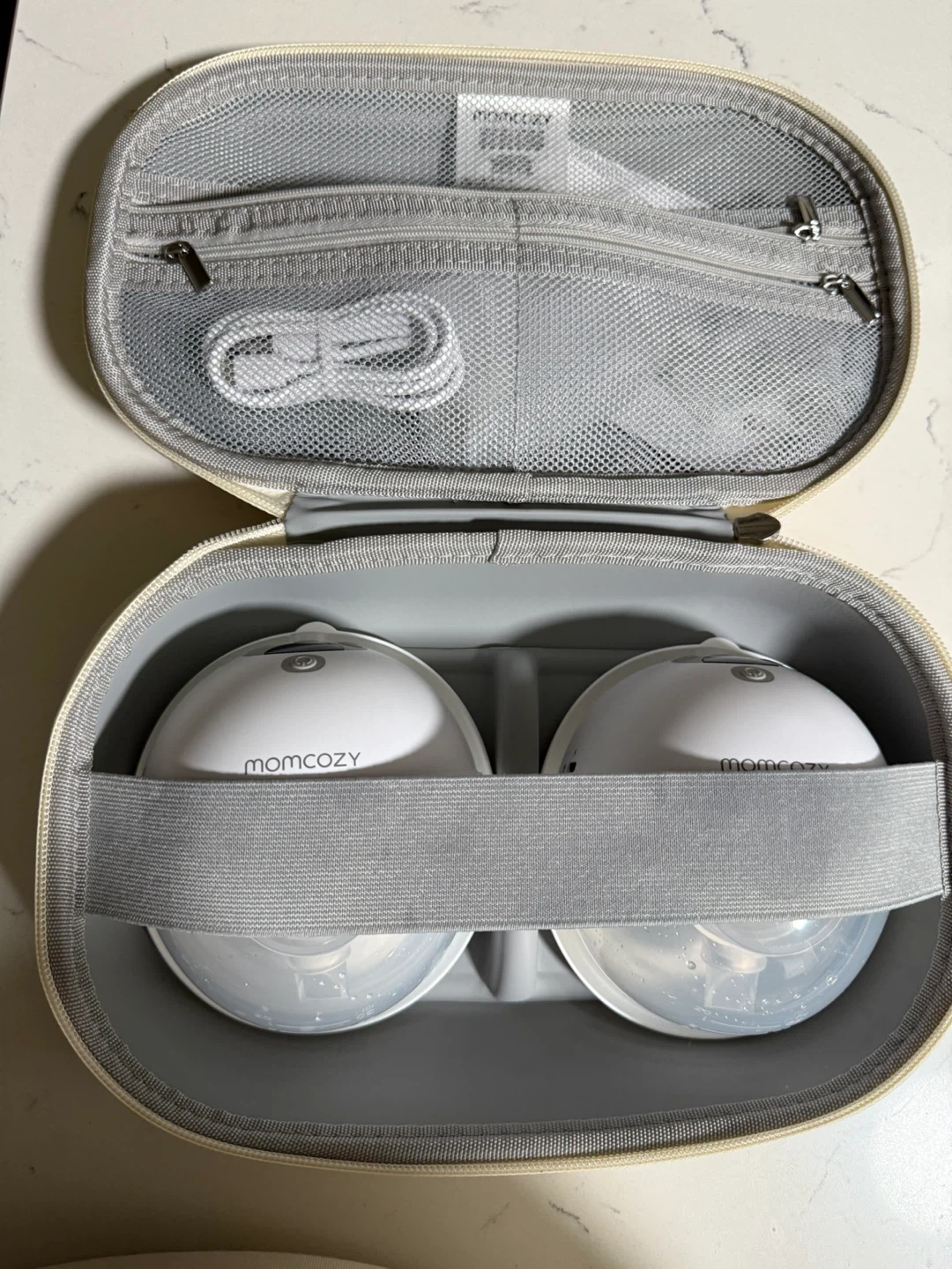 Selling a momcozy wearable breast pump! It comes with its original case and a charger. It's in great condition and ready for a new home