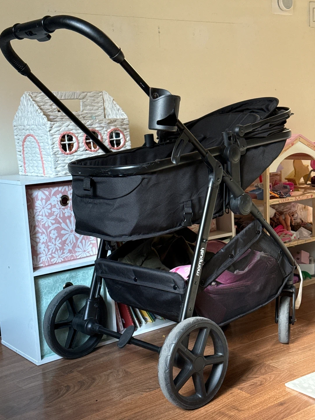 65Selling a Mompush Ultimate2 stroller in black. It's in pretty good condition. Marks are from tossing it in the car. Has a convenient cup holder, bassinet, and other features.