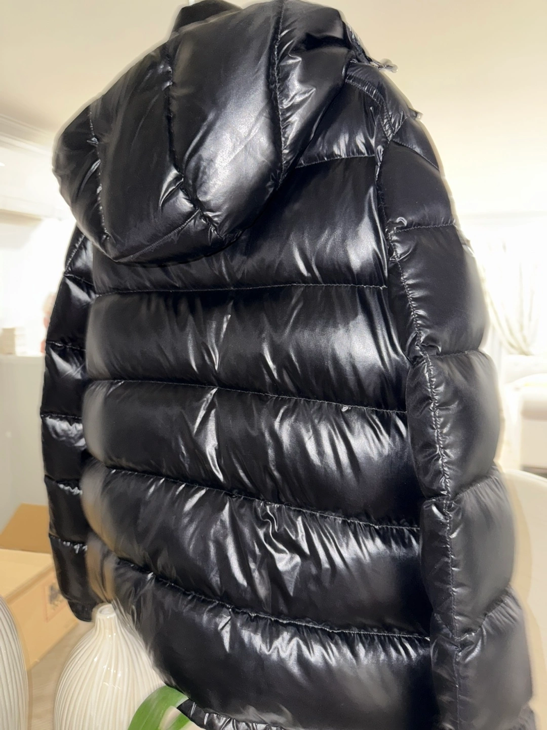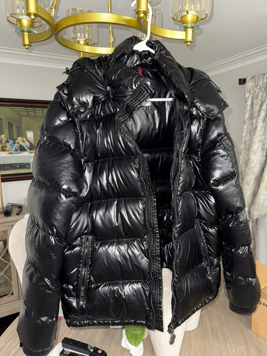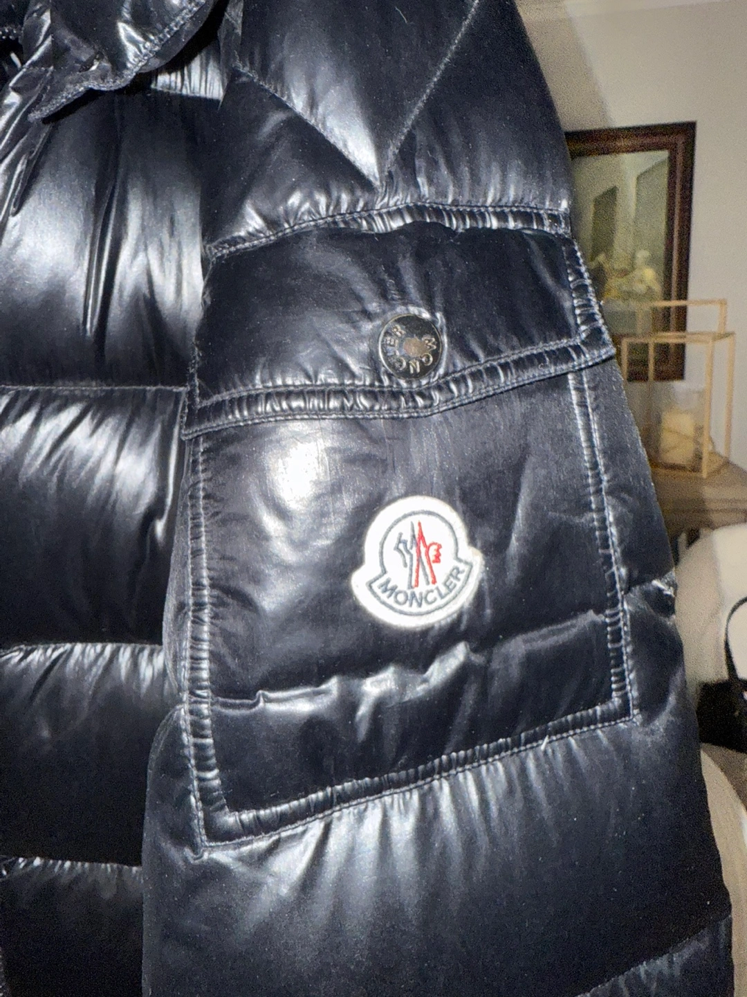 Selling a stylish Moncler black puffer jacket! It's in great condition and ready to keep you warm. The jacket features the classic Moncler logo and design. Check out the pictures for more details!