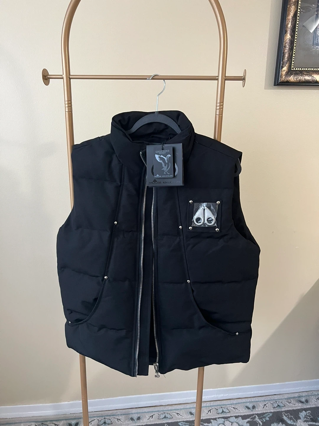 10Selling a Moose Knuckles black padded vest. It's in brand new condition and ready for a new home! Perfect for layering during those chilly days. The vest is down-filled and features the iconic Moose Knuckles logo. Feel free to ask any questions!