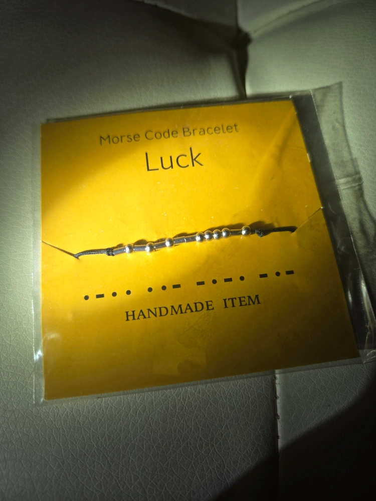 Selling a handmade Morse Code bracelet that spells out 'Luck'! It's a simple and unique accessory.