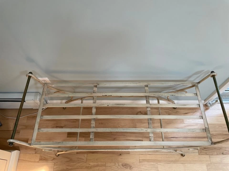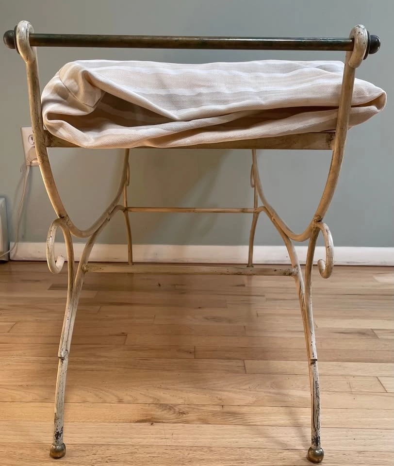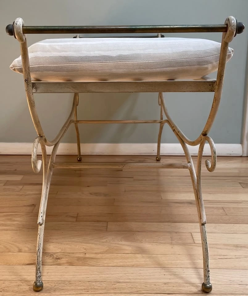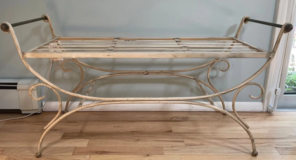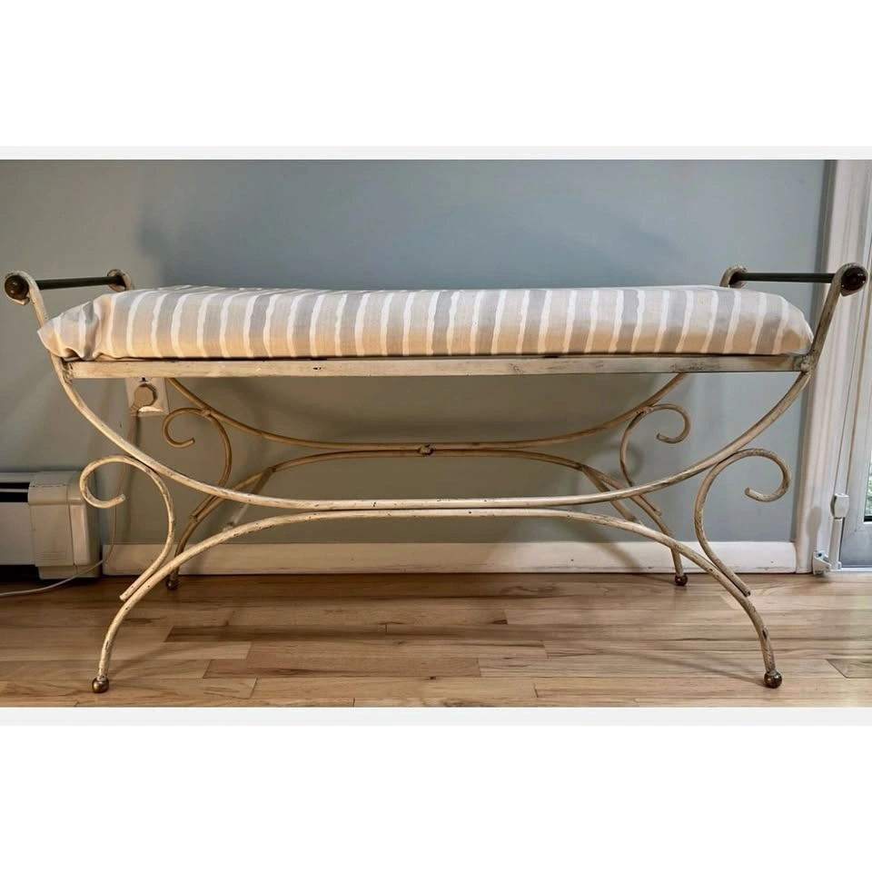 Antique Wrought Iron Bench with Cushion