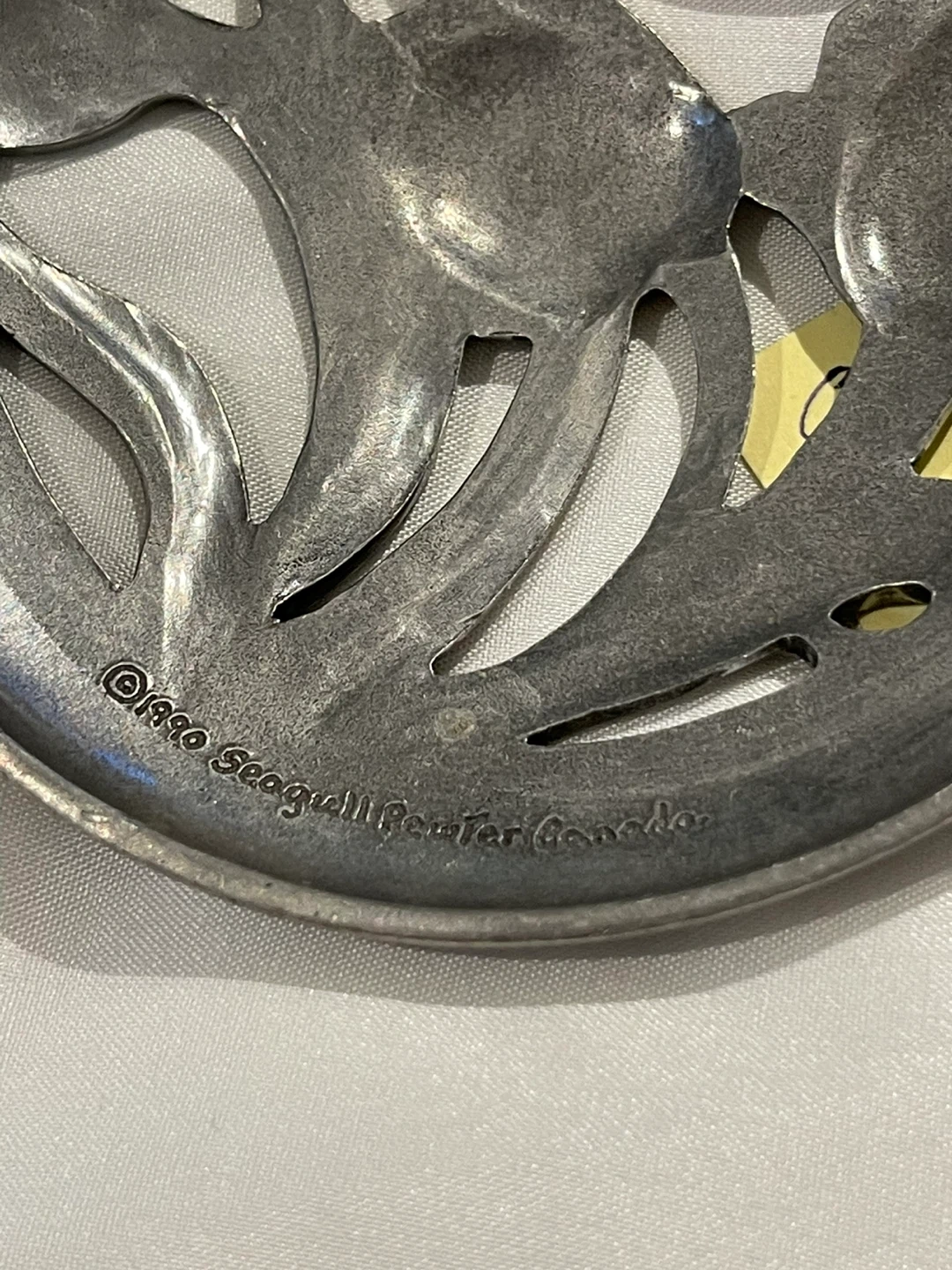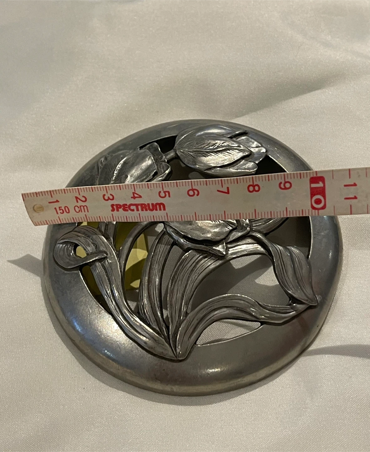 Selling a lovely Seagull Pewter jar lid featuring a tulip design. It's in great condition and made in Canada. This jar lid is approximately 9 cm in diameter. Perfect for adding a touch of elegance to any room!