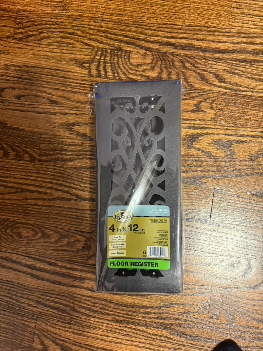 I have a brand new Hampton Bay floor register for sale! It's still in the original packaging. It measures 4 inches by 12 inches. Features include easy air flow control and a smooth glide damper. I have about 13 of these