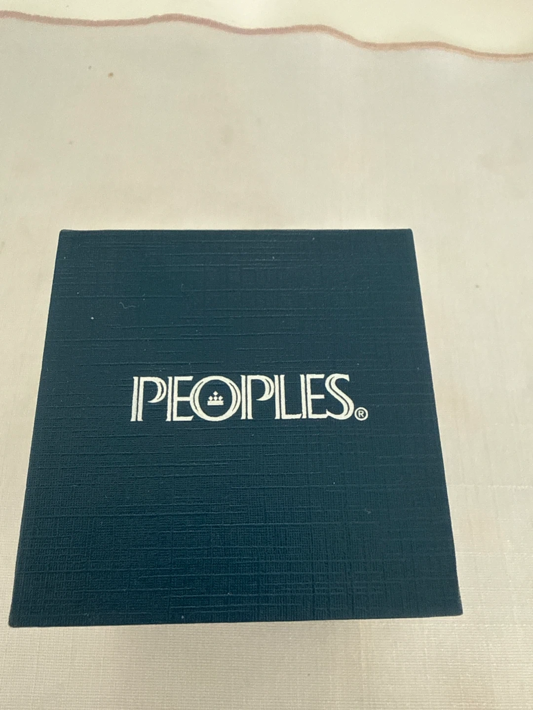 This is a Peoples brand diamond ring. It comes in its original box, ready for gifting. The ring has multiple small diamonds set around it.