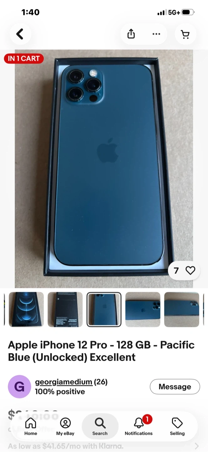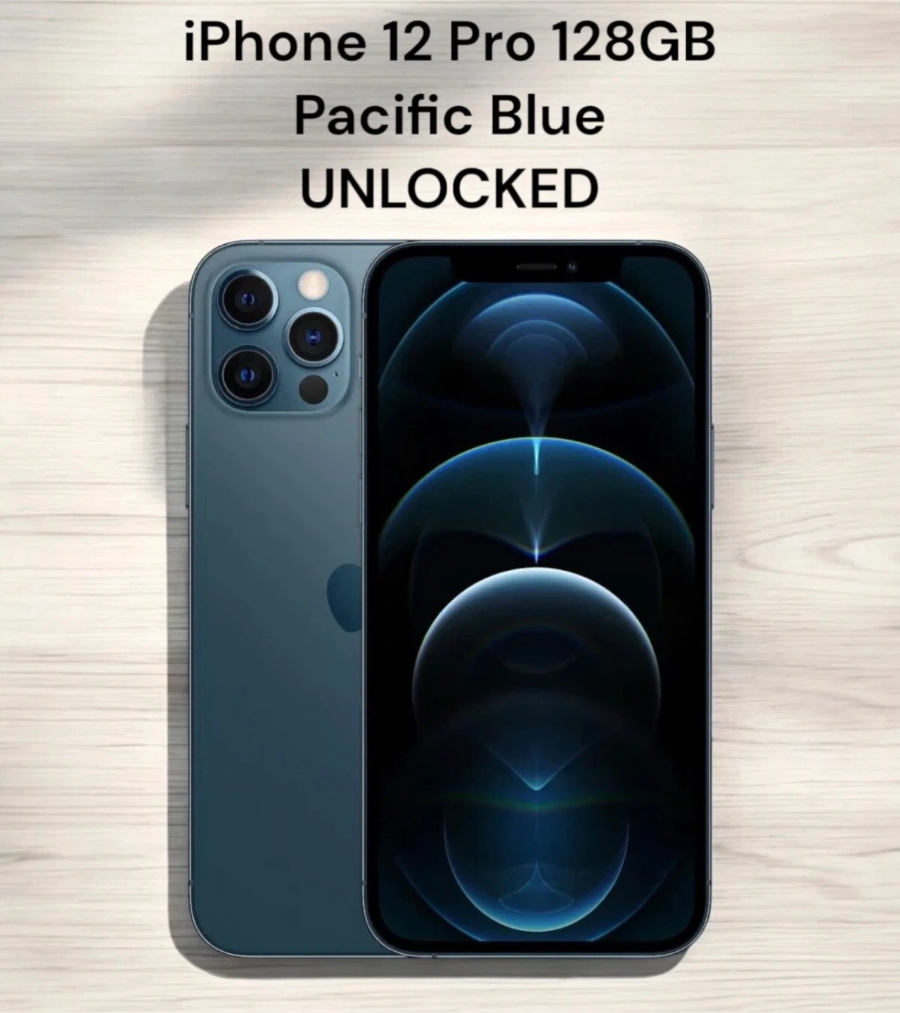 This is an Apple iPhone 12 Pro with 128GB of storage in Pacific Blue. It's unlocked and in excellent condition. Includes a case