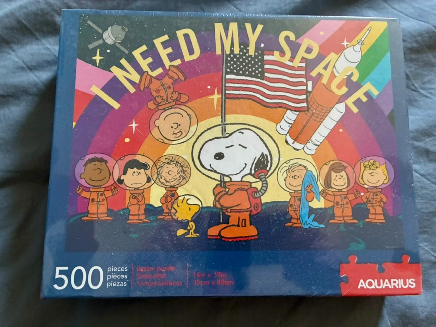 This BNIB Aquarius jigsaw puzzle features the Peanuts gang in space. It has 500 pieces and measures 14in x 19in (35cm x 48cm).