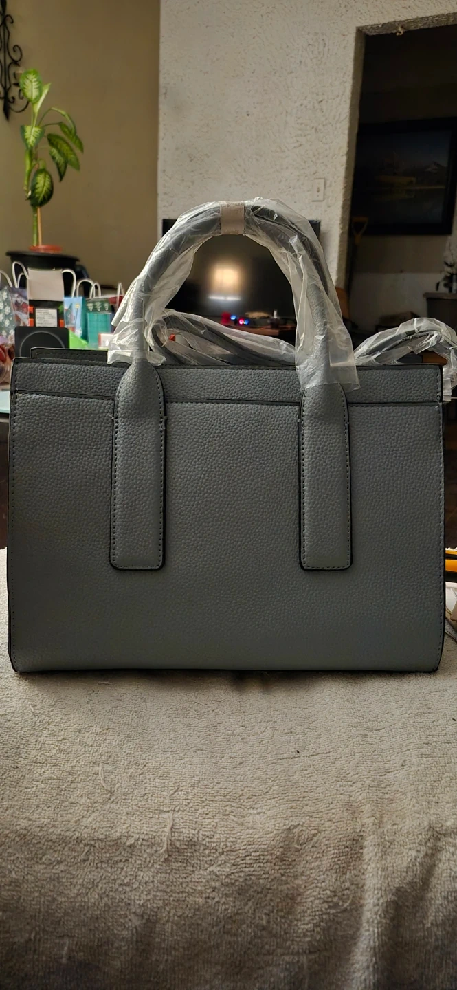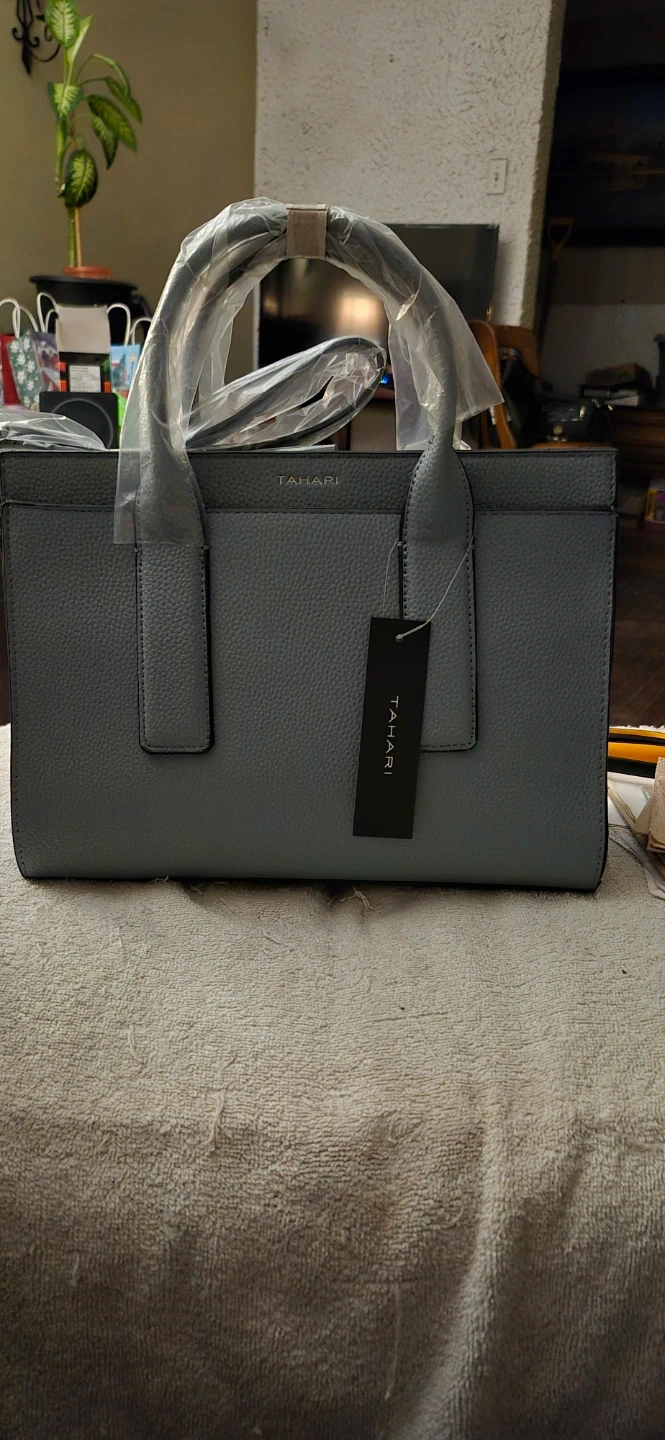 Here's a brand new Tahari tote bag, still with the tags on! It's a lovely grey colour and would be perfect for work or everyday use. The handles are still wrapped in plastic. 13 across by 10 high. It's in excellent condition and ready for a new owner.