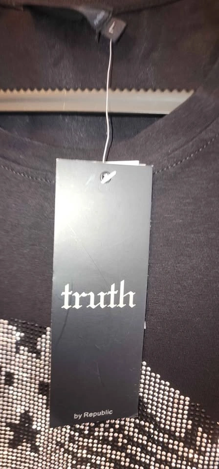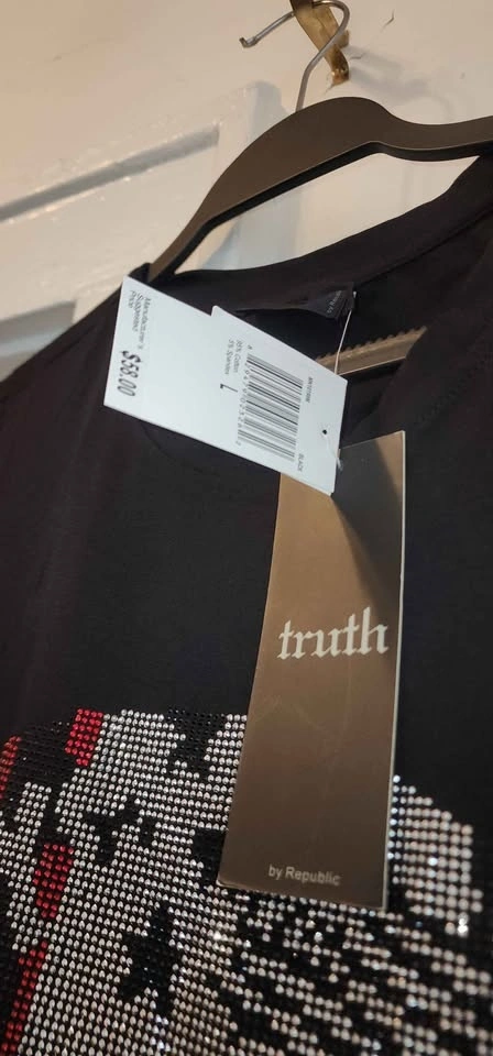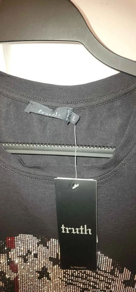 Truth by Republic men's black t-shirt with a rhinestone skull graphic.
