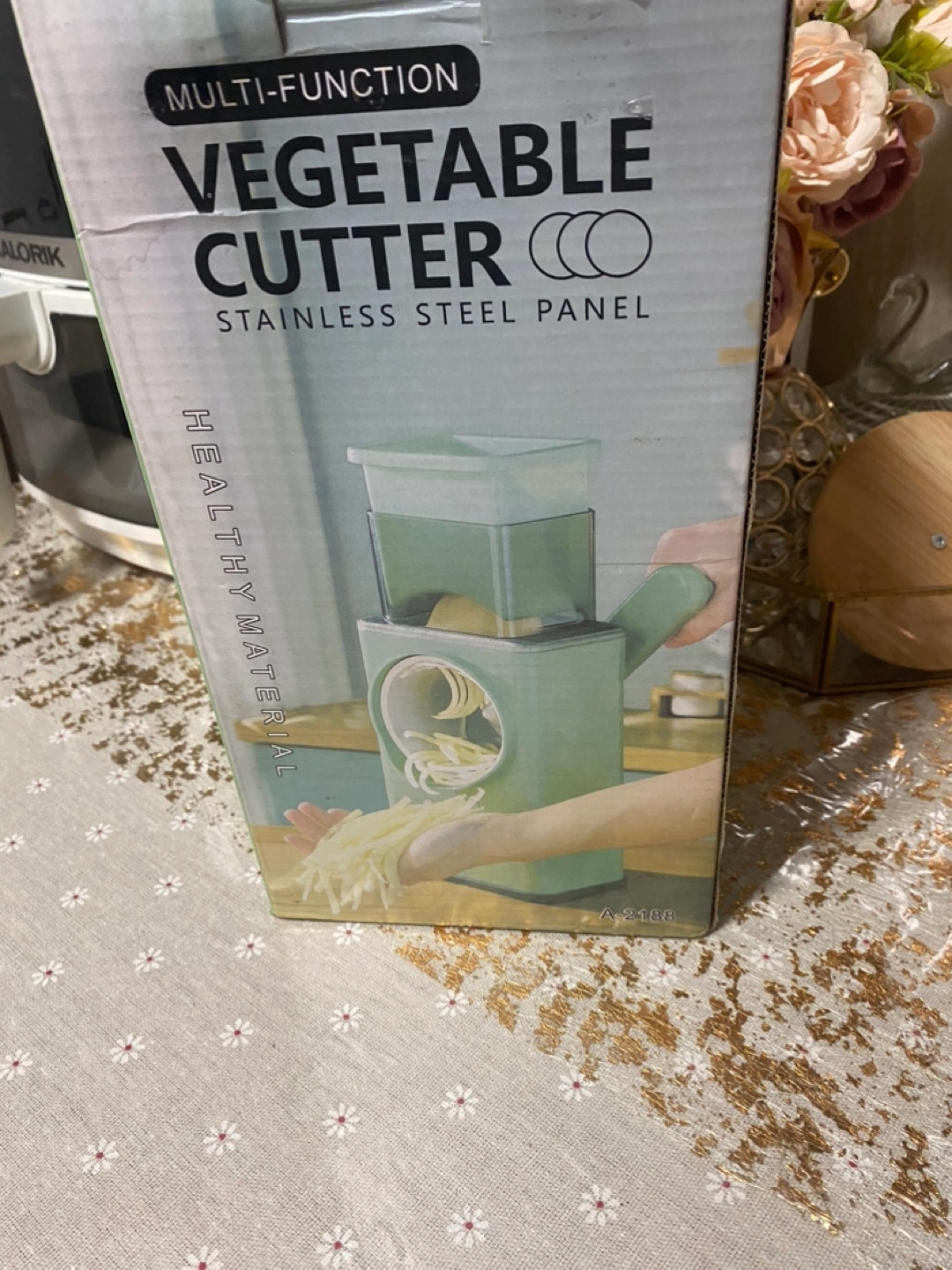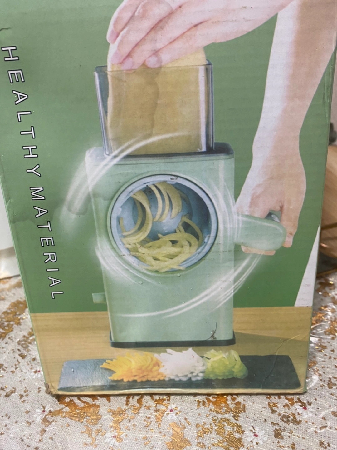 Stainless steel panel, healthy material. Great for making french fries, veggie noodles, and more. Includes a container for easy storage.